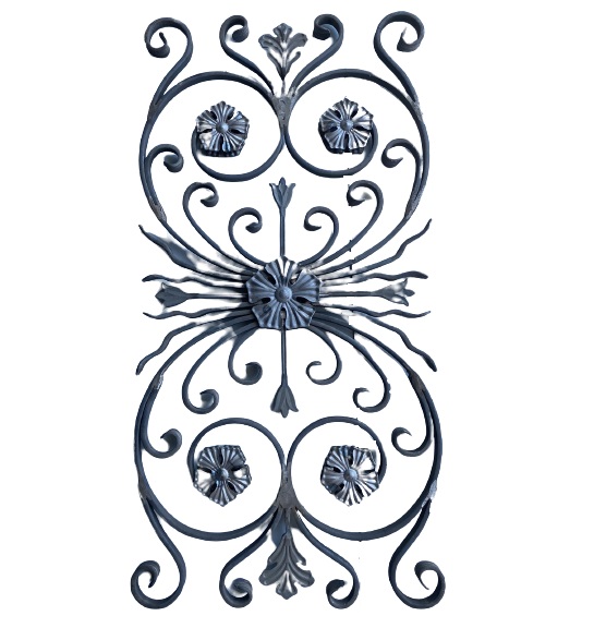 Декоративно пано от гладко желязо. Симетричен дизайн с нежни извивки, които ще предадат допълнителна красота към всички врати, огради, маси, столове, цветарници, люлки, беседки, решетки и други изделия от ковано желязо.