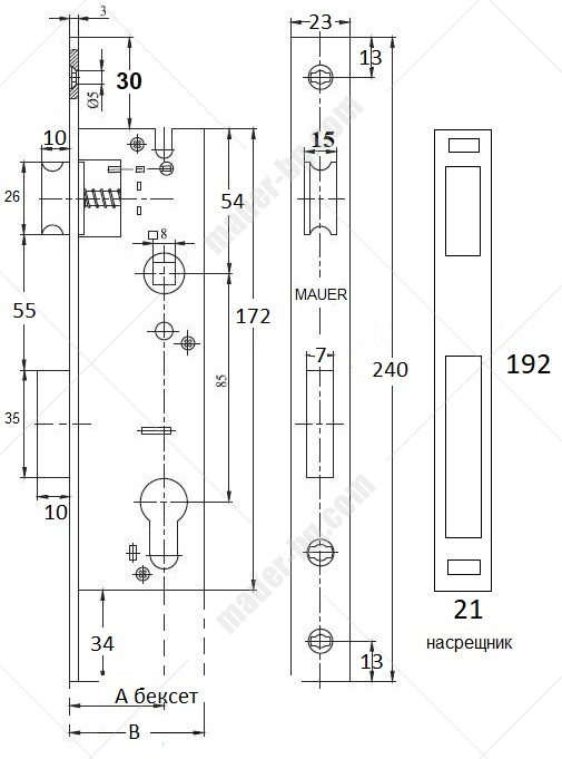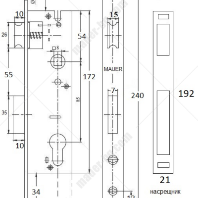 Висококачествена брава за алуминиева дограма. Стоманена челна планка и насрещник. Предлага се в бексет – 20мм, междуцентрие 85мм. Едноходова, масивни езици. Ключалката активира горния език. Подходяща за лява и дясна врата. Работи с ключалка по DIN стандарт на палеца.