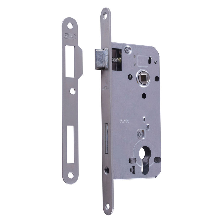 За дървени и метални врати. Габаритно изпълнение по БДС. Работи с ключалки стандарт БДС и DIN. Позволява обръщане на горния език за лява и дясна врата.