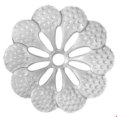 Метален декоративен цвете от щампована ламарина. Може да се използва при направата на парапет, оградни пана, разнообразни аксесоари, градински мебели и други.
