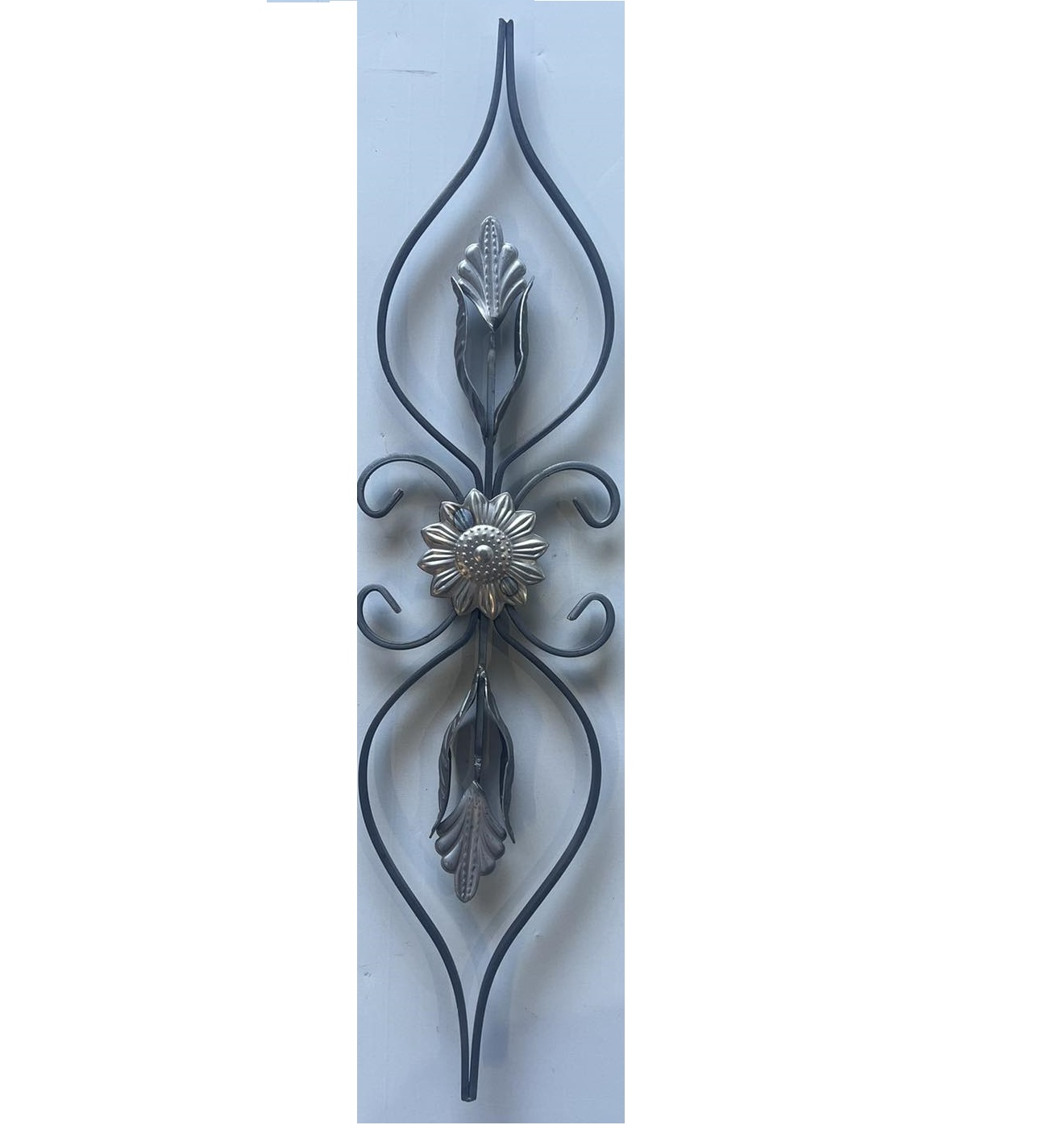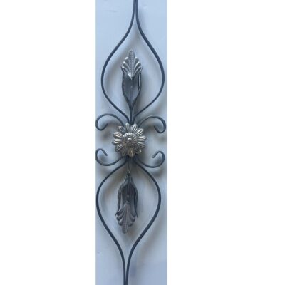 Стилен декоративен елемент от ковано желязо с листа и цветя. Идеално решение за красиви огради и парапети. Огъването, коването и заваряването на продукта се извършва както от специализирани машини, така и от майстори ковачи.