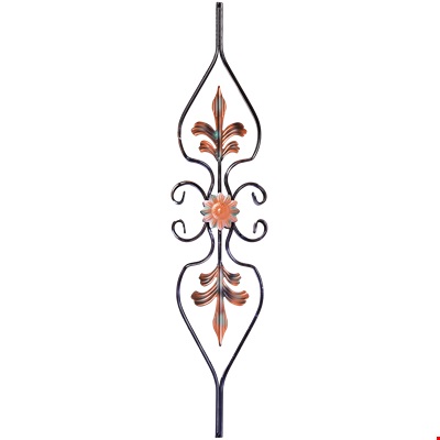 Декоративен елемент от ковано желязо с листа и цветя за вграждане в парапети, огради,маси, столове, цветарници, люлки, беседки, решетки и други изделия от ковано желязо.