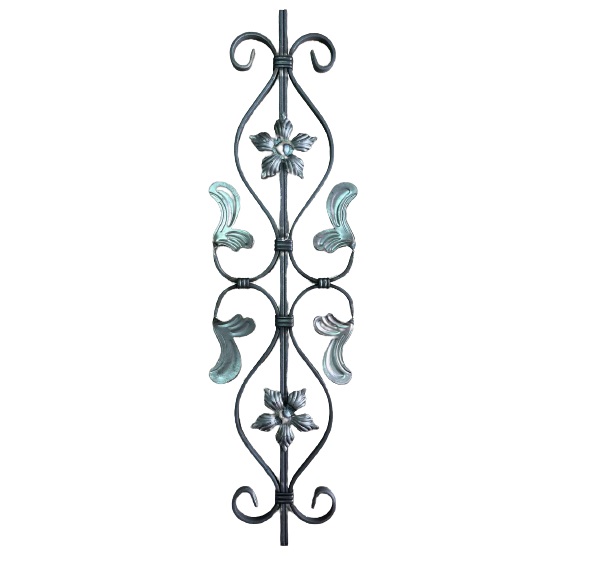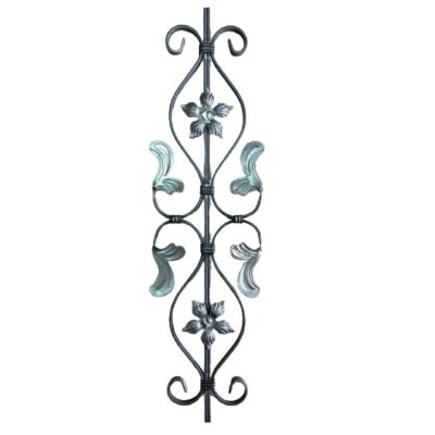 Декоративен елемент от ковано желязо с листа и цветя за вграждане в парапети, огради,маси, столове, цветарници, люлки, беседки, решетки и други изделия от ковано желязо.