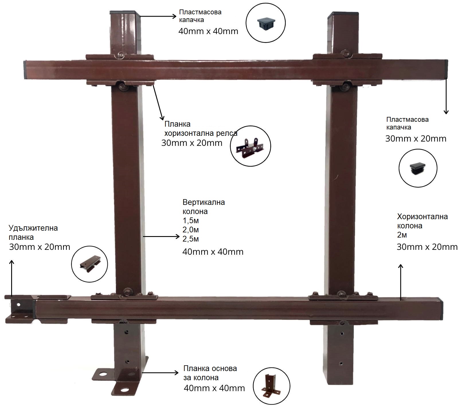 Правоъгълната тръба е хоризонталният елемент, върху който е фиксирана металната летва.