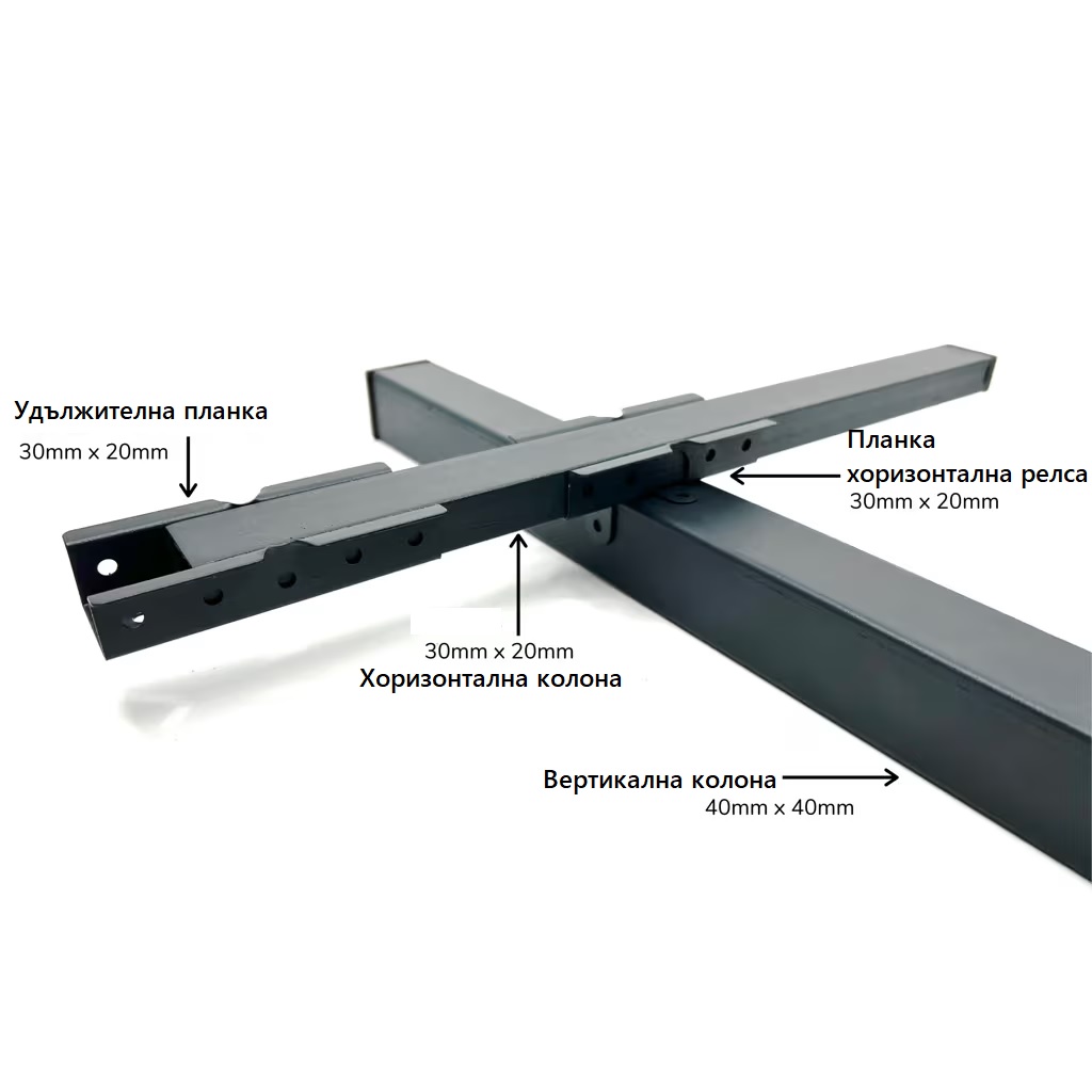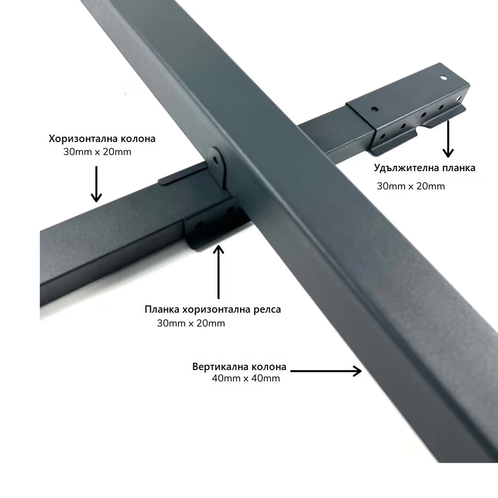 Правоъгълната тръба  е хоризонталният елемент, върху който е фиксирана металната летва.