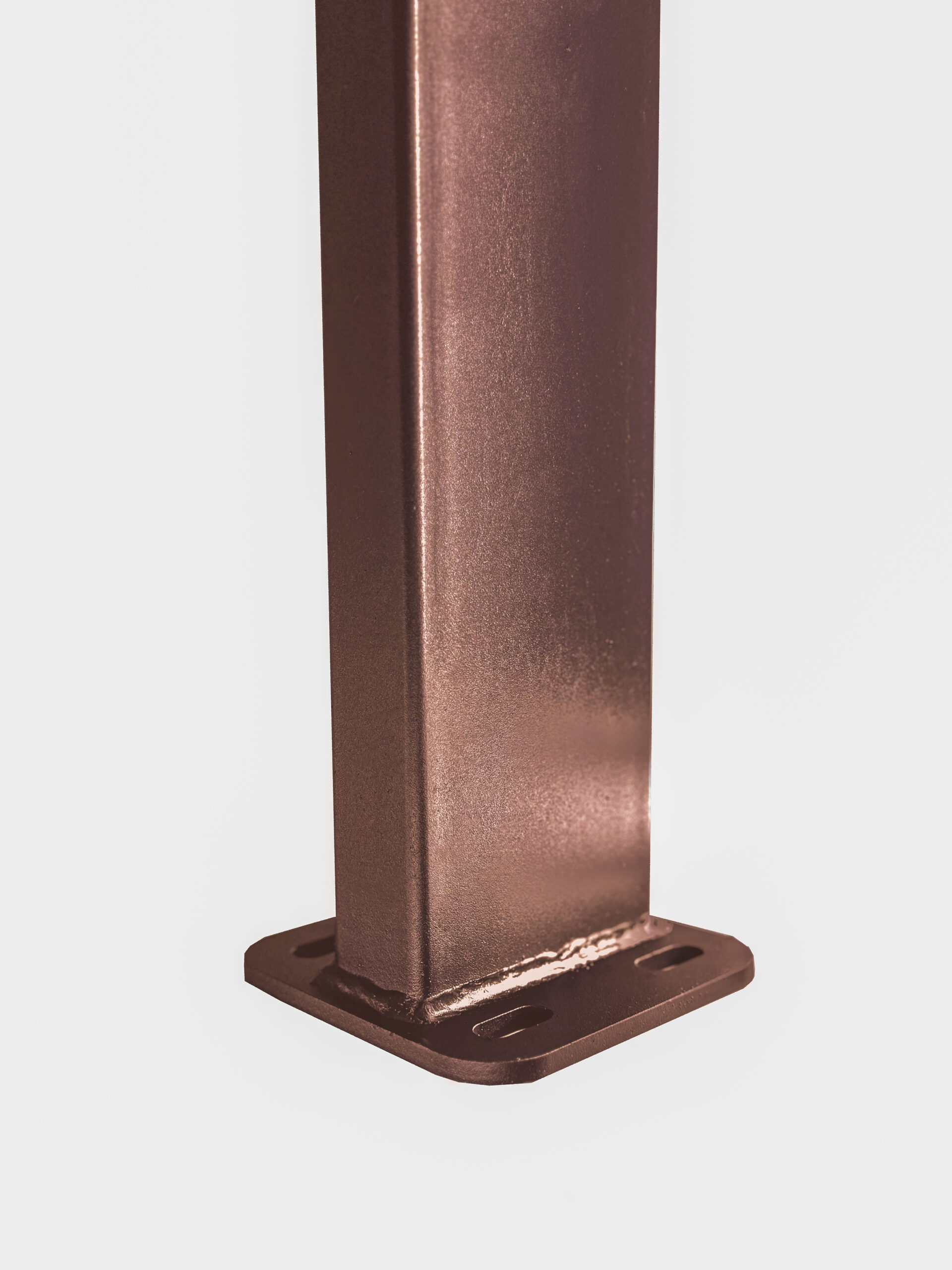 Колчето с планка е продукт, предназначен за изграждане на жилищни, промишлени и търговски огради, както и за различни градски застройки. Изработена е от електрохимично поцинкована стомана, с дебелина 2 мм за стената и 5 мм за заварената основа, като по този начин осигурява здрава фиксация и отлична стабилност. Подметката е снабдена с фиксиращи отвори, улесняващи анкерирането в бетон с помощта на обикновени или химически анкери.