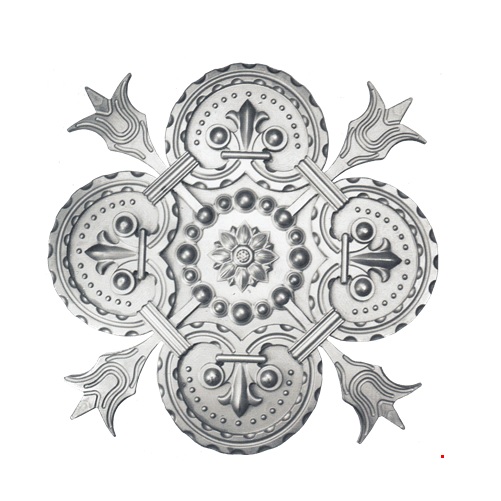 Централен елемент от щампована ламарина, подходящ за декориране на врати и портали от ковано желязо.