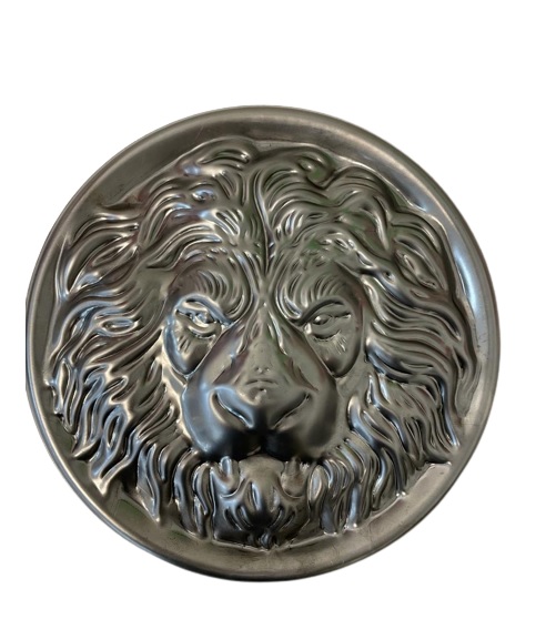 Щампована ламарина лъвска глава. Декоративен акцент за парапети, огради, преградни пана и врати от ковано желязо