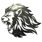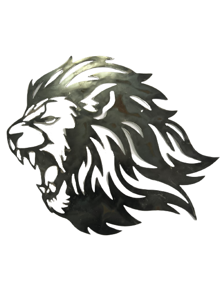 Лазерно рязана лъвска глава от ламарина с дебелина 2 мм. Може да се използва за декорация на огради, парапети, стени и врати от ковано желязо.