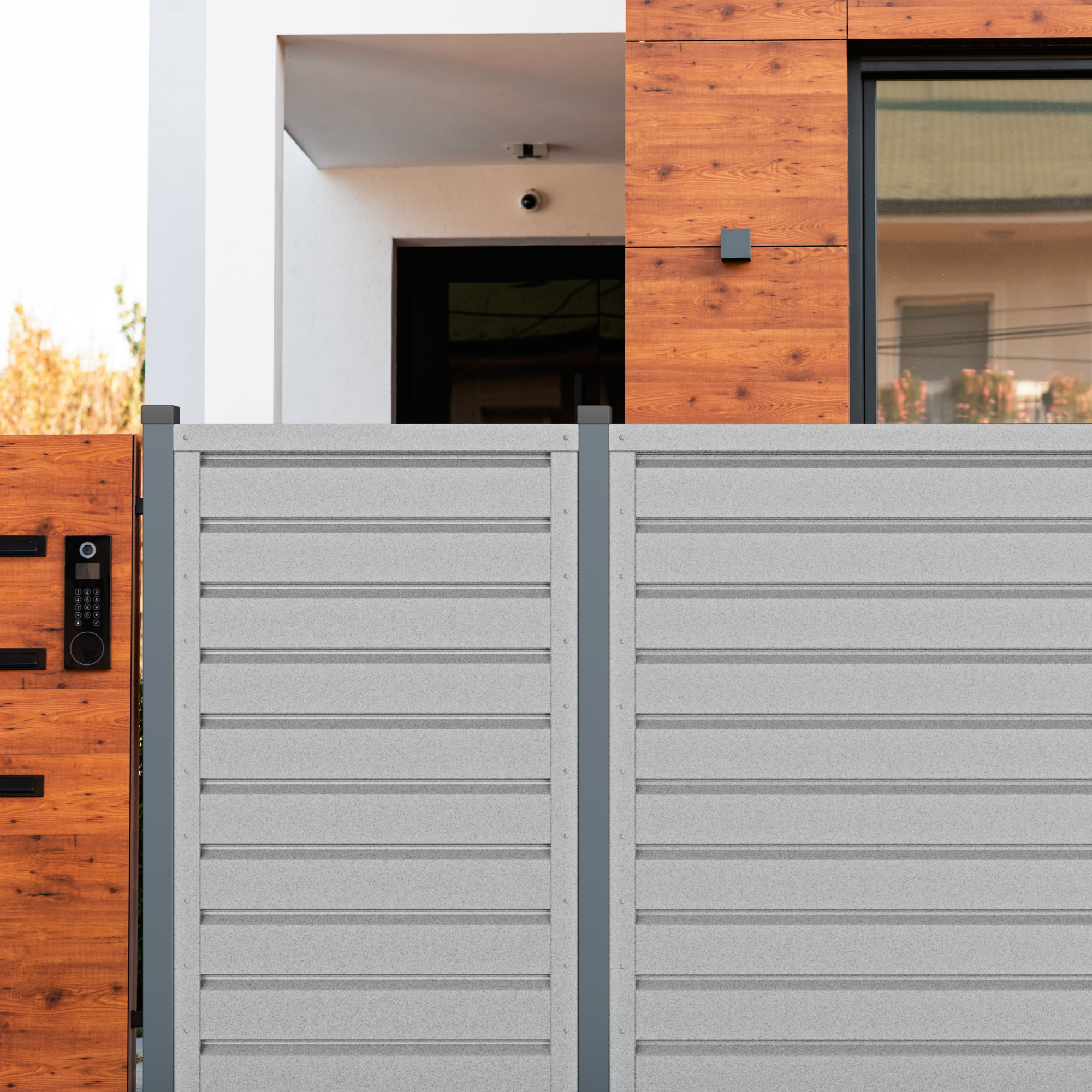 Металните странични U профили, монтирани отстрани на панела (вляво/вдясно).Те са фабрично предварително приготвени, за прецизно насочване и монтаж; стъпката на отворите се калибрира, така че панелът да осигурява правилна вентилация и оптимален визуален вид, поддържайки нивото на поверителност и позволявайки бърз монтаж.