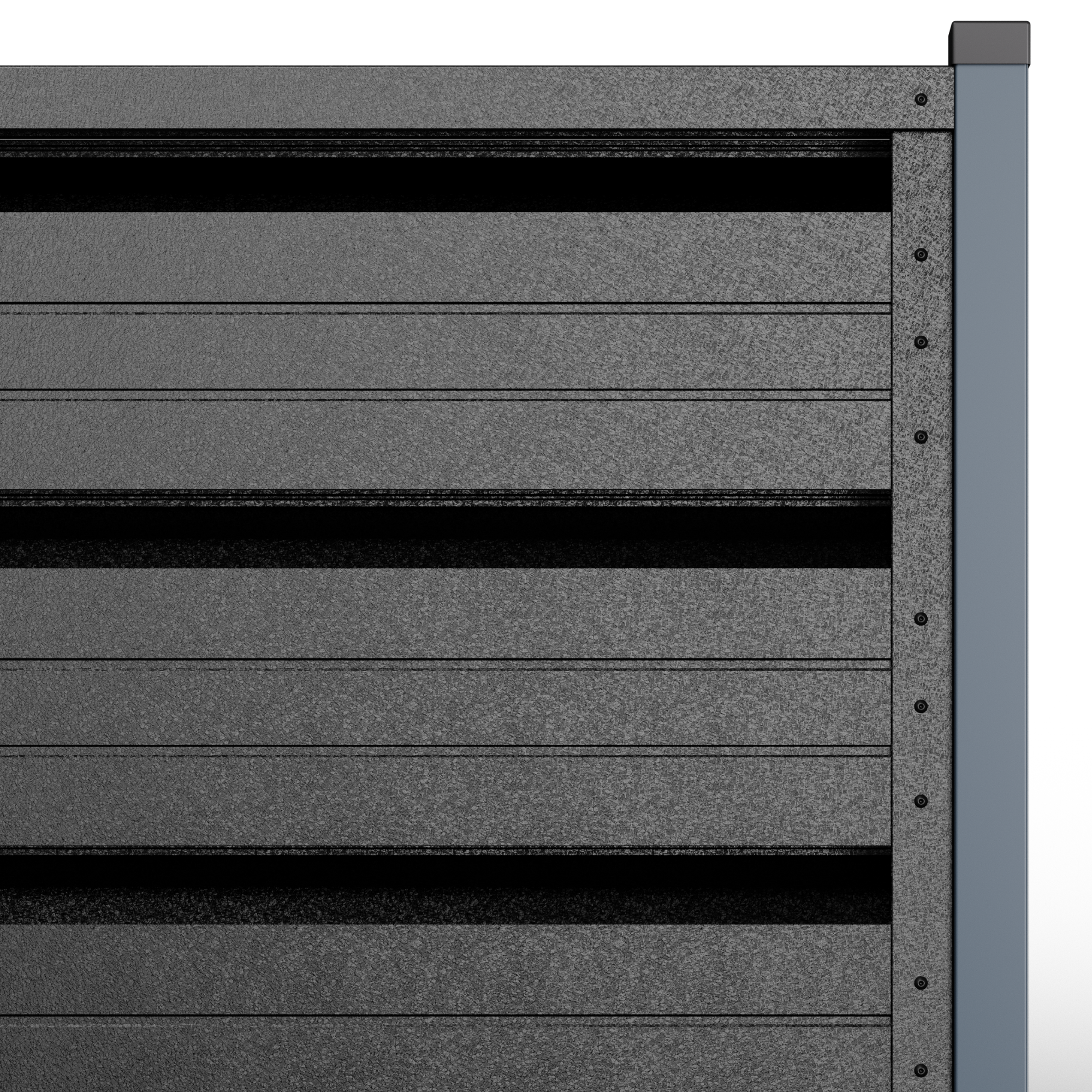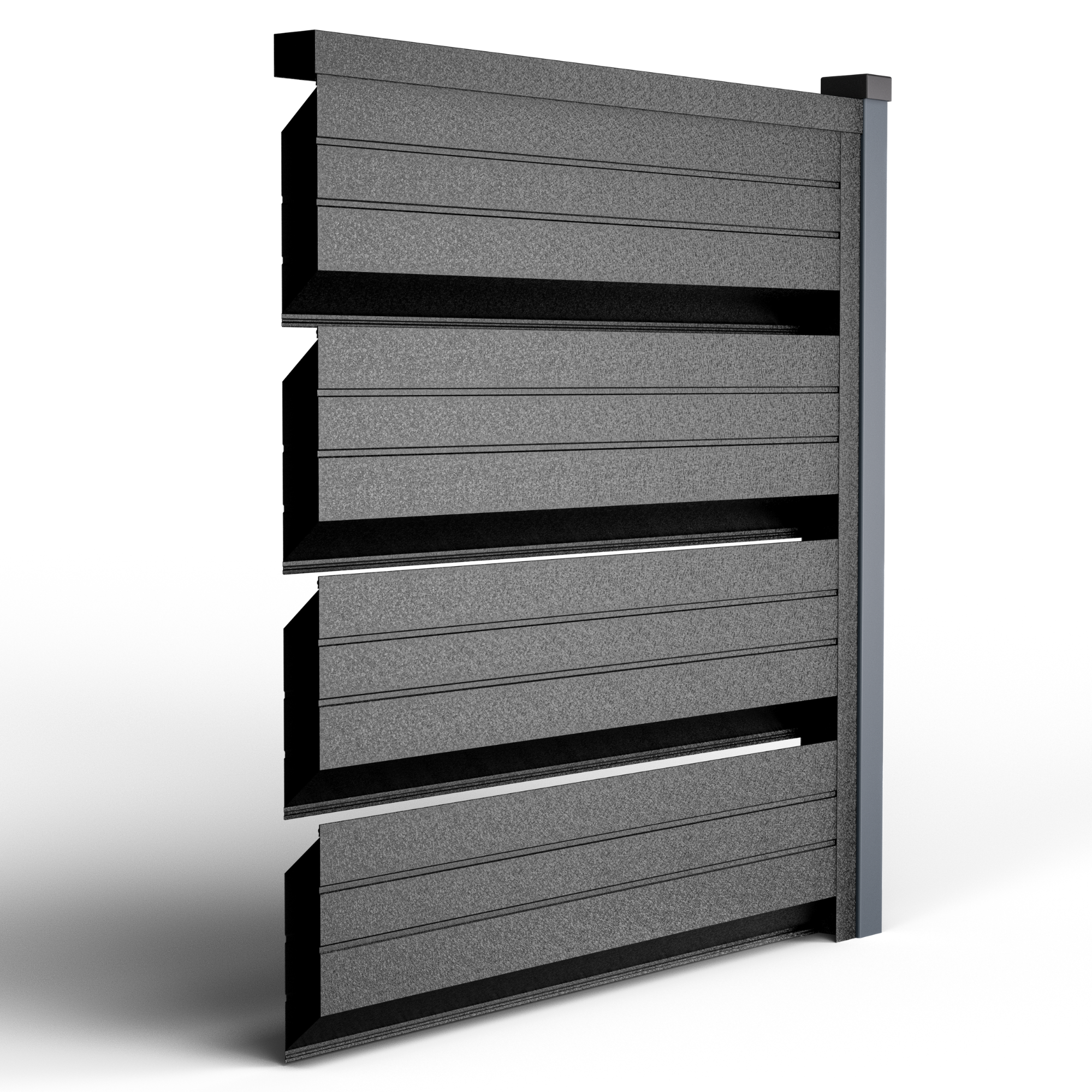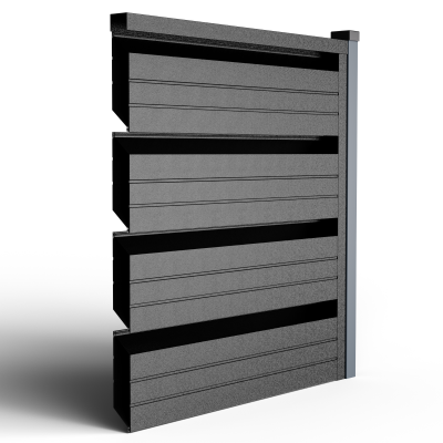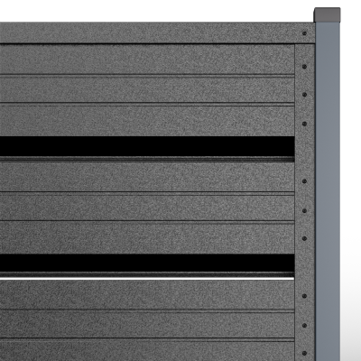 Металните странични U профили, монтирани отстрани на панела (вляво/вдясно).Те са фабрично предварително приготвени, за прецизно насочване и монтаж; стъпката на отворите се калибрира, така че панелът да осигурява правилна вентилация и оптимален визуален вид, поддържайки нивото на поверителност и позволявайки бърз монтаж.