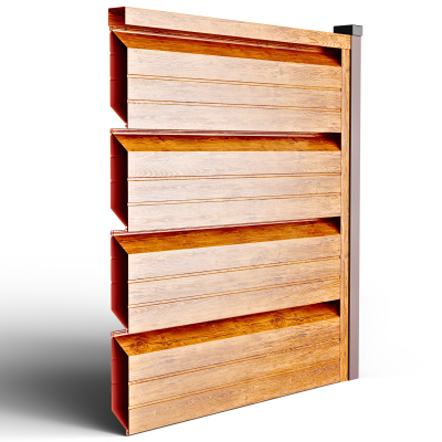 Металните странични U профили, монтирани отстрани на панела (вляво/вдясно).Те са фабрично предварително приготвени, за прецизно насочване и монтаж; стъпката на отворите се калибрира, така че панелът да осигурява правилна вентилация и оптимален визуален вид, поддържайки нивото на поверителност и позволявайки бърз монтаж.