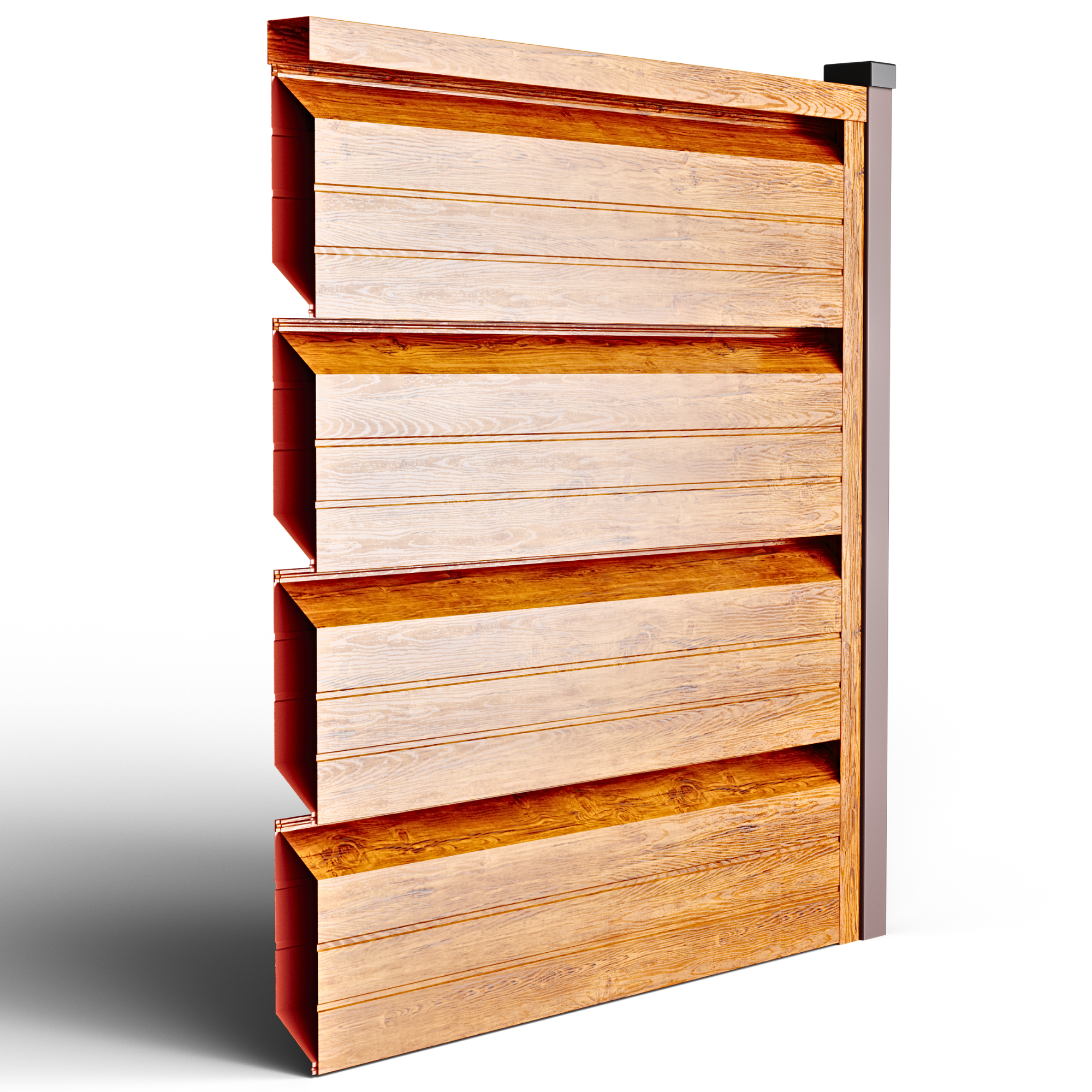 • Ефективна циркулация на въздуха и поверителност – геометрията на кутиите позволява постоянен обмен на въздух, намалявайки натрупването на топлина (без парников ефект) и поддържайки стабилен микроклимат, благоприятен за растителността; същевременно директният поглед от улицата е блокиран, запазвайки поверителността.