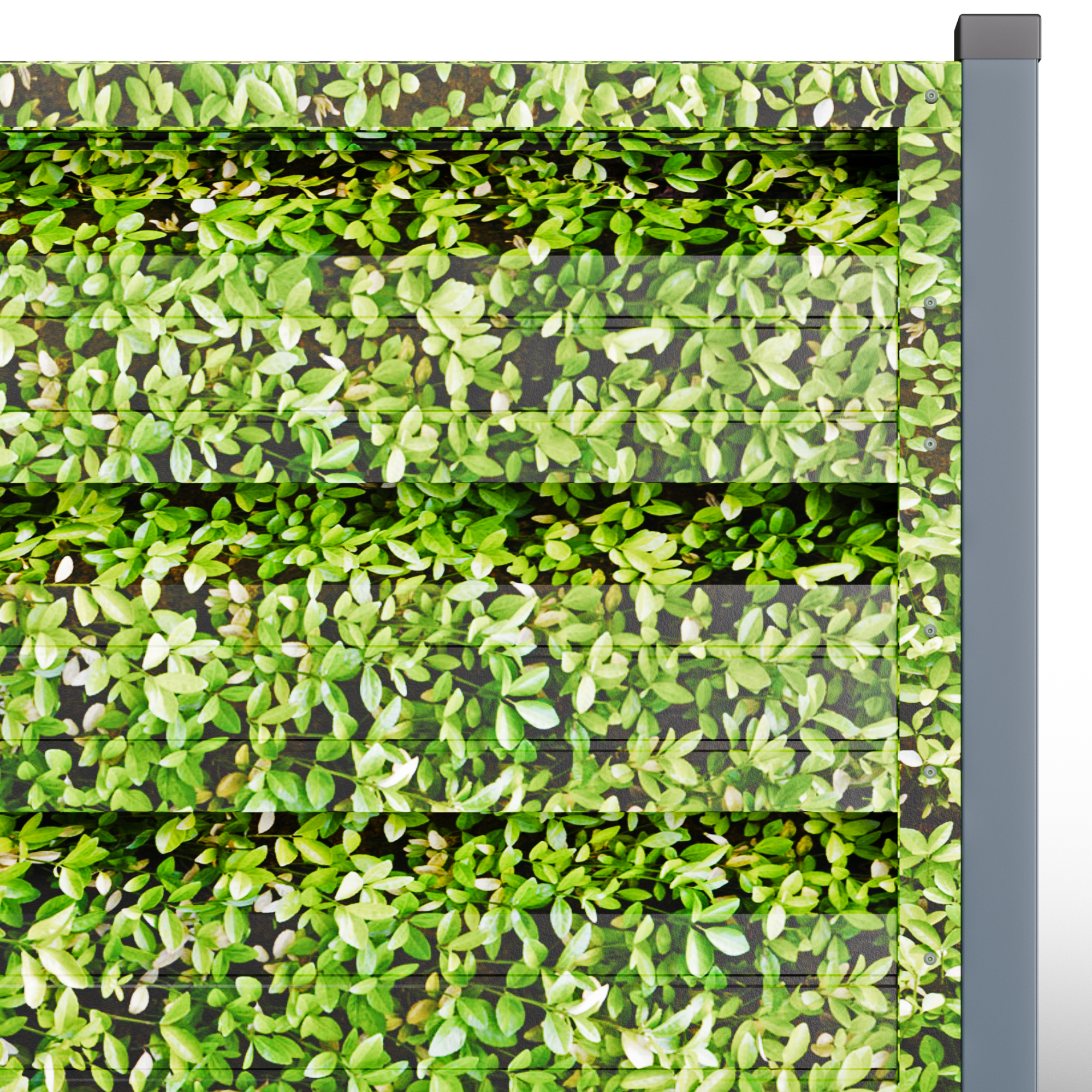 Металните странични U профили, монтирани отстрани на панела (вляво/вдясно).Те са фабрично предварително приготвени, за прецизно насочване и монтаж; стъпката на отворите се калибрира, така че панелът да осигурява правилна вентилация и оптимален визуален вид, поддържайки нивото на поверителност и позволявайки бърз монтаж.