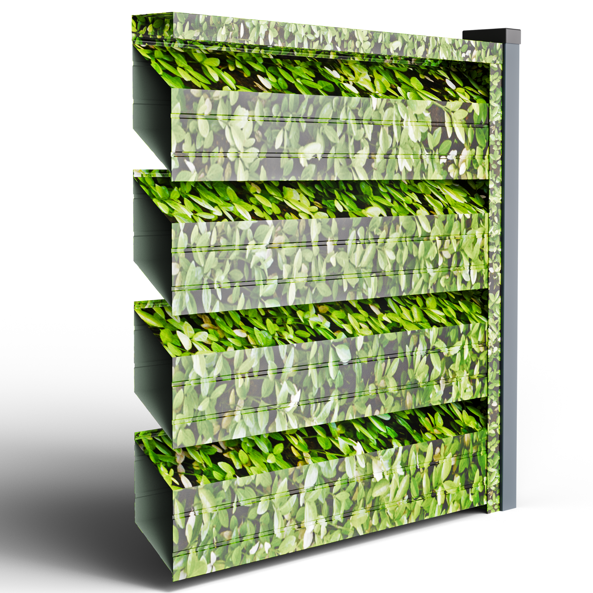 • Ефективна циркулация на въздуха и поверителност – геометрията на кутиите позволява постоянен обмен на въздух, намалявайки натрупването на топлина (без парников ефект) и поддържайки стабилен микроклимат, благоприятен за растителността; същевременно директният поглед от улицата е блокиран, запазвайки поверителността.