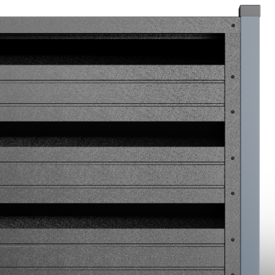 Металните странични U профили, монтирани отстрани на панела (вляво/вдясно).Те са фабрично предварително приготвени, за прецизно насочване и монтаж; стъпката на отворите се калибрира, така че панелът да осигурява правилна вентилация и оптимален визуален вид, поддържайки нивото на поверителност и позволявайки бърз монтаж.