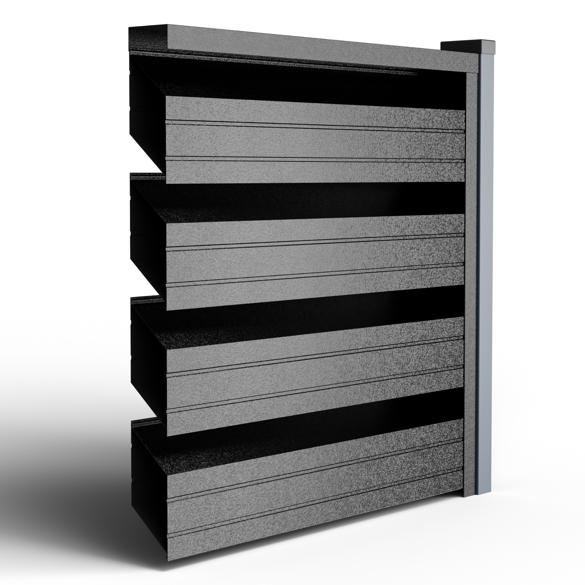 • Ефективна циркулация на въздуха и поверителност – геометрията на кутиите позволява постоянен обмен на въздух, намалявайки натрупването на топлина (без парников ефект) и поддържайки стабилен микроклимат, благоприятен за растителността; същевременно директният поглед от улицата е блокиран, запазвайки поверителността.