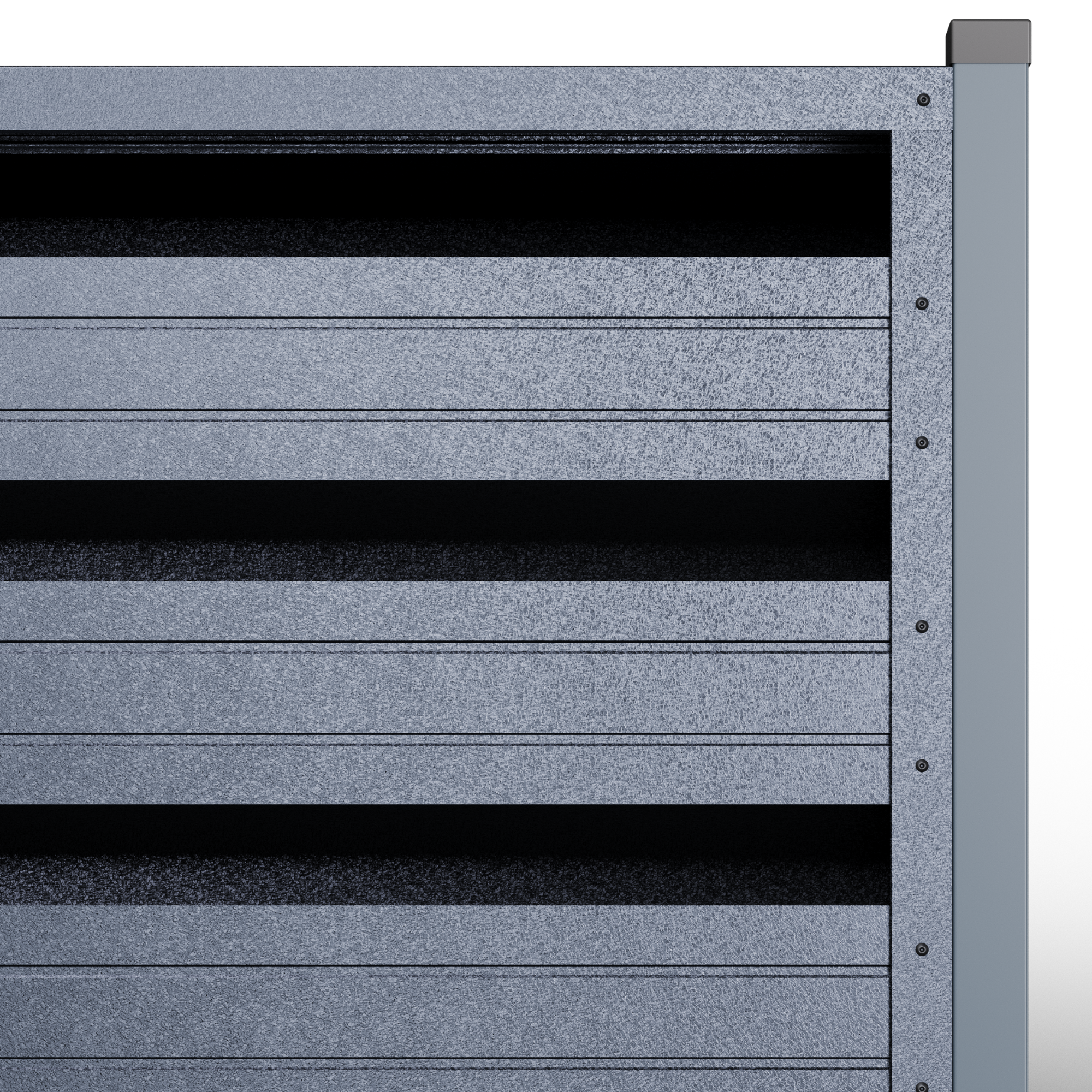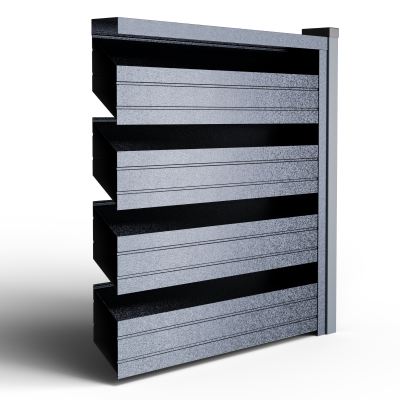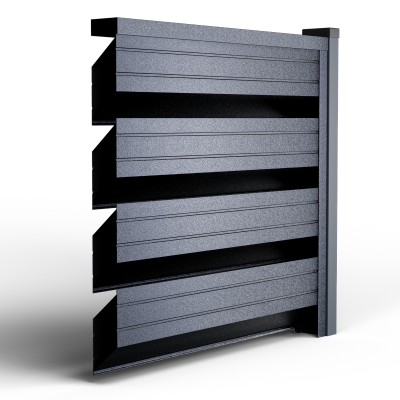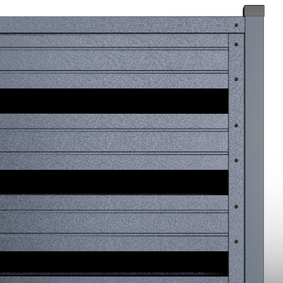Металните странични U профили, монтирани отстрани на панела (вляво/вдясно).Те са фабрично предварително приготвени, за прецизно насочване и монтаж; стъпката на отворите се калибрира, така че панелът да осигурява правилна вентилация и оптимален визуален вид, поддържайки нивото на поверителност и позволявайки бърз монтаж.