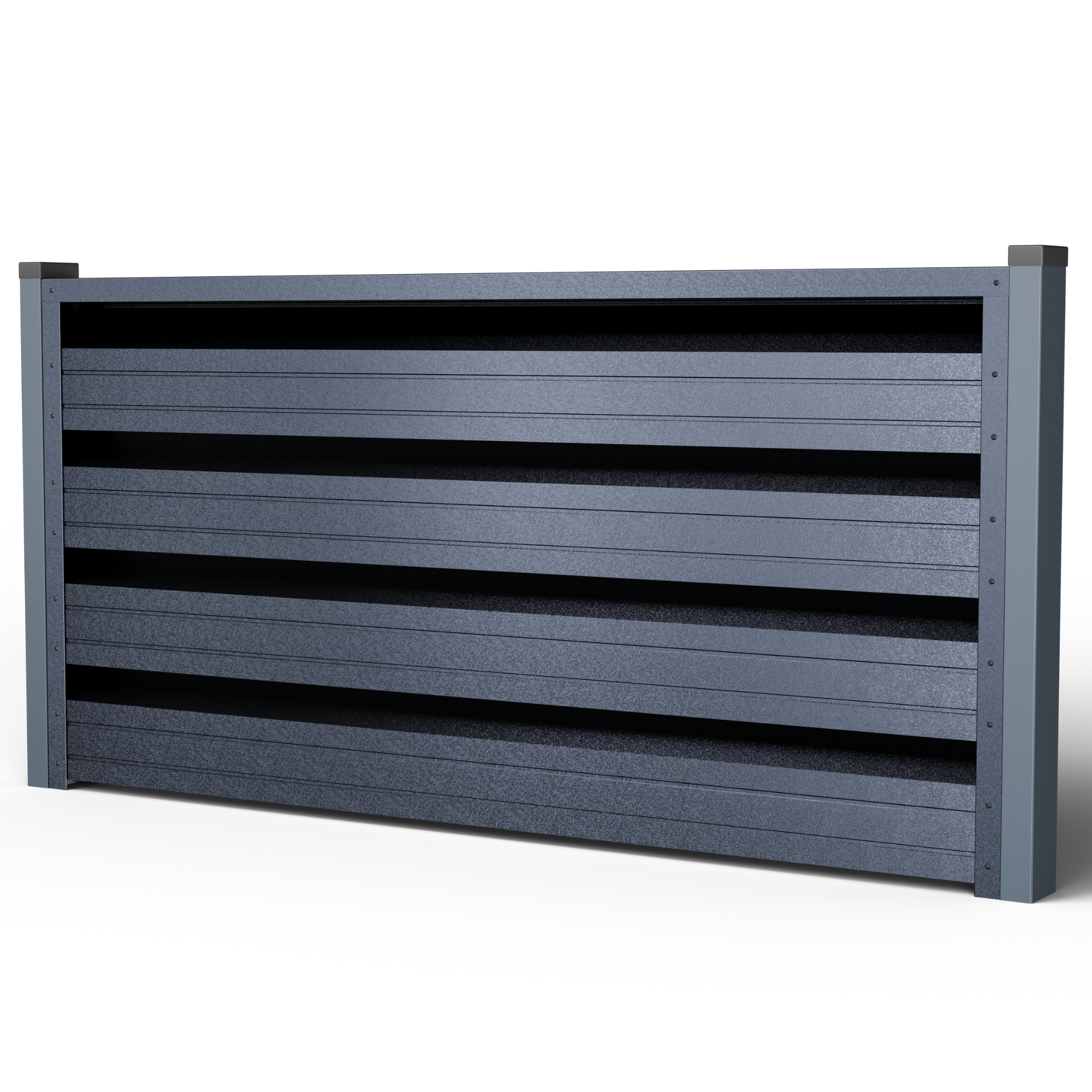 • Ефективна циркулация на въздуха и поверителност – геометрията на кутиите позволява постоянен обмен на въздух, намалявайки натрупването на топлина (без парников ефект) и поддържайки стабилен микроклимат, благоприятен за растителността; същевременно директният поглед от улицата е блокиран, запазвайки поверителността.