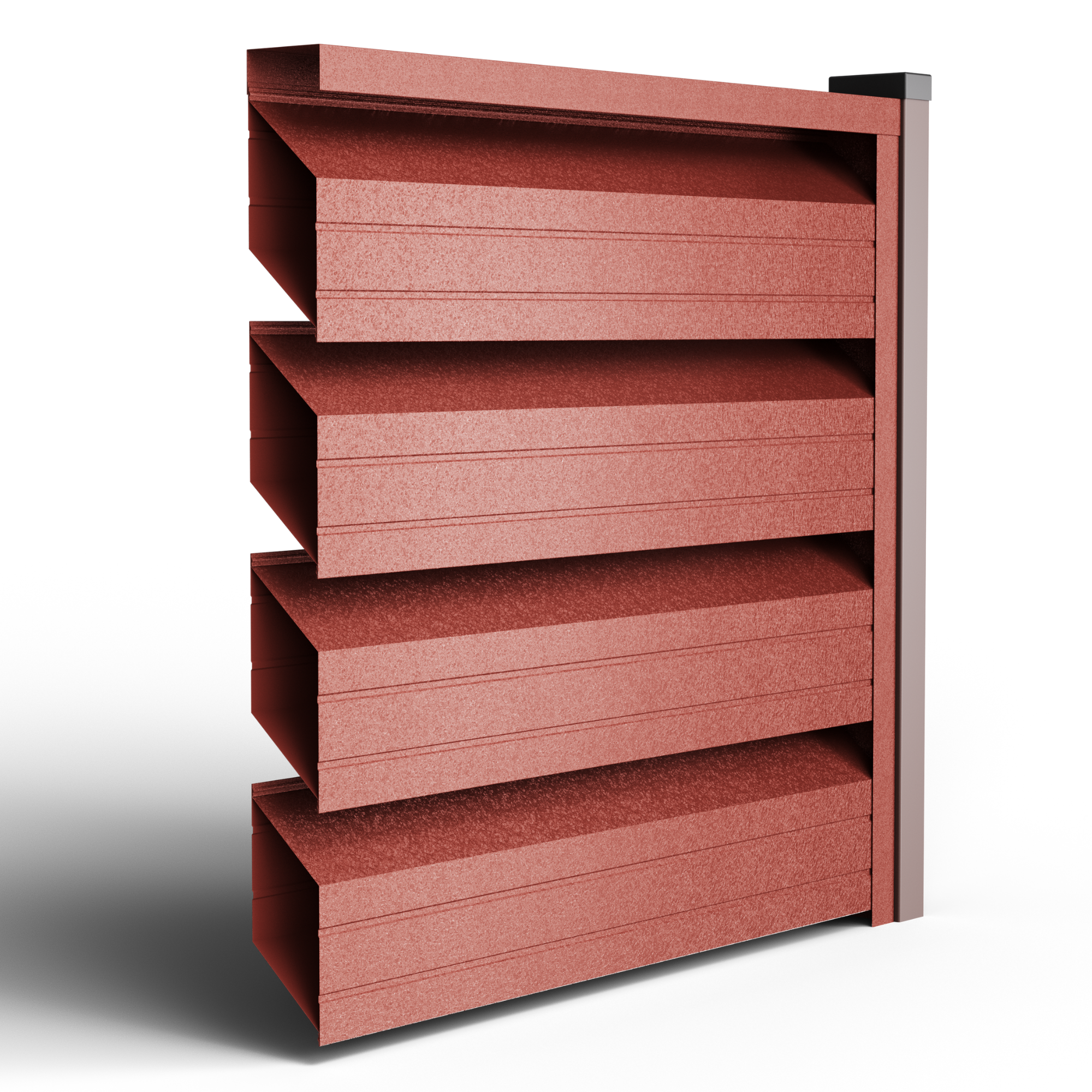 • Ефективна циркулация на въздуха и поверителност – геометрията на кутиите позволява постоянен обмен на въздух, намалявайки натрупването на топлина (без парников ефект) и поддържайки стабилен микроклимат, благоприятен за растителността; същевременно директният поглед от улицата е блокиран, запазвайки поверителността.