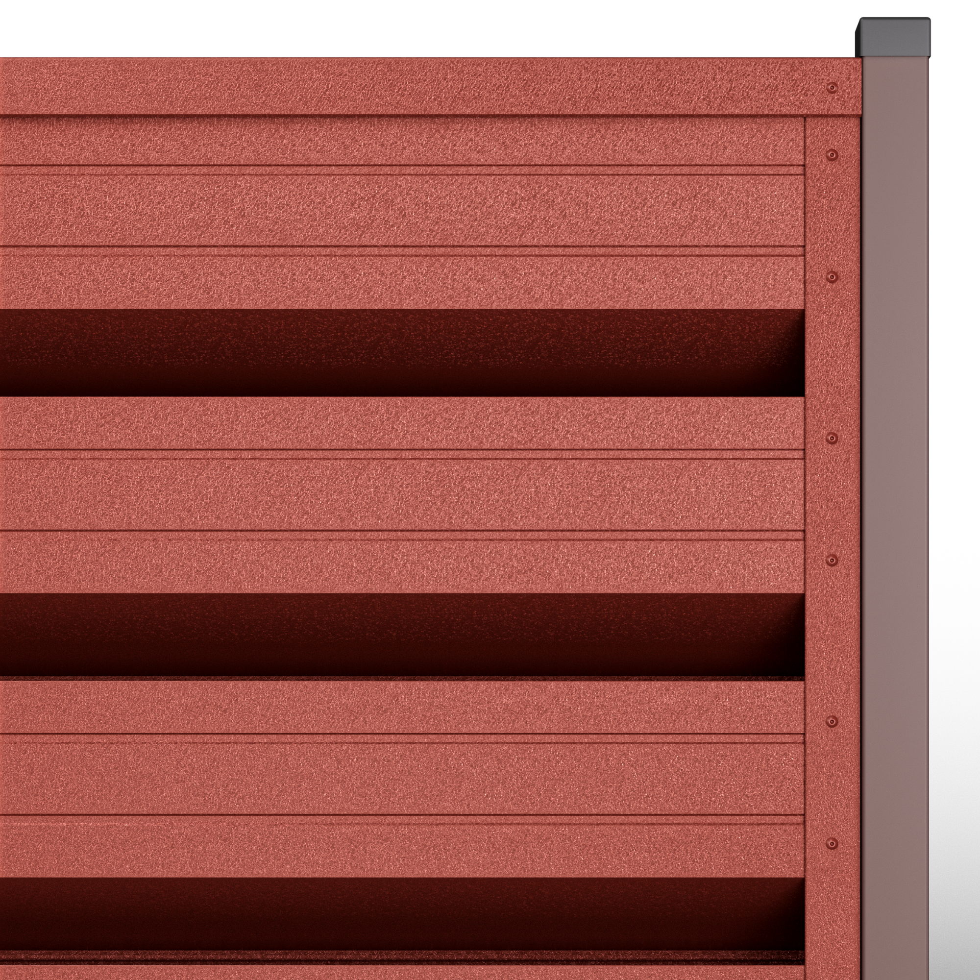 Металните странични U профили, монтирани отстрани на панела (вляво/вдясно).Те са фабрично предварително приготвени, за прецизно насочване и монтаж; стъпката на отворите се калибрира, така че панелът да осигурява правилна вентилация и оптимален визуален вид, поддържайки нивото на поверителност и позволявайки бърз монтаж.