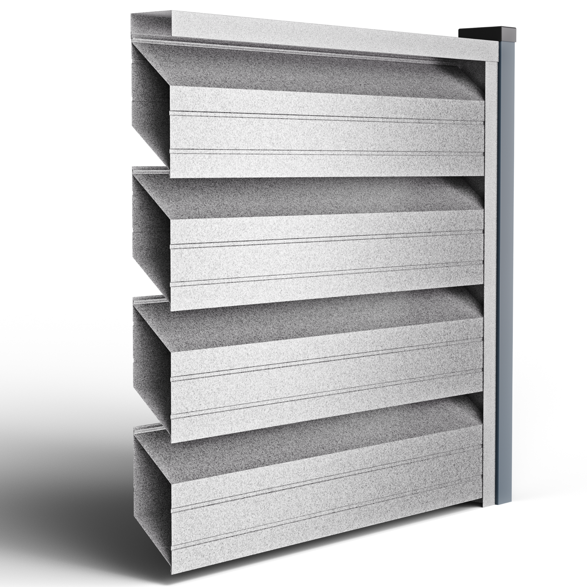 • Ефективна циркулация на въздуха и поверителност – геометрията на кутиите позволява постоянен обмен на въздух, намалявайки натрупването на топлина (без парников ефект) и поддържайки стабилен микроклимат, благоприятен за растителността; същевременно директният поглед от улицата е блокиран, запазвайки поверителността.