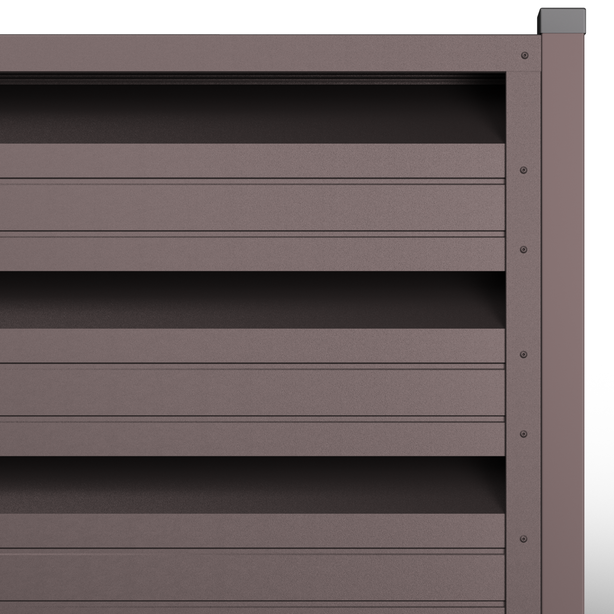 Металните странични U профили, монтирани отстрани на панела (вляво/вдясно).Те са фабрично предварително приготвени, за прецизно насочване и монтаж; стъпката на отворите се калибрира, така че панелът да осигурява правилна вентилация и оптимален визуален вид, поддържайки нивото на поверителност и позволявайки бърз монтаж.