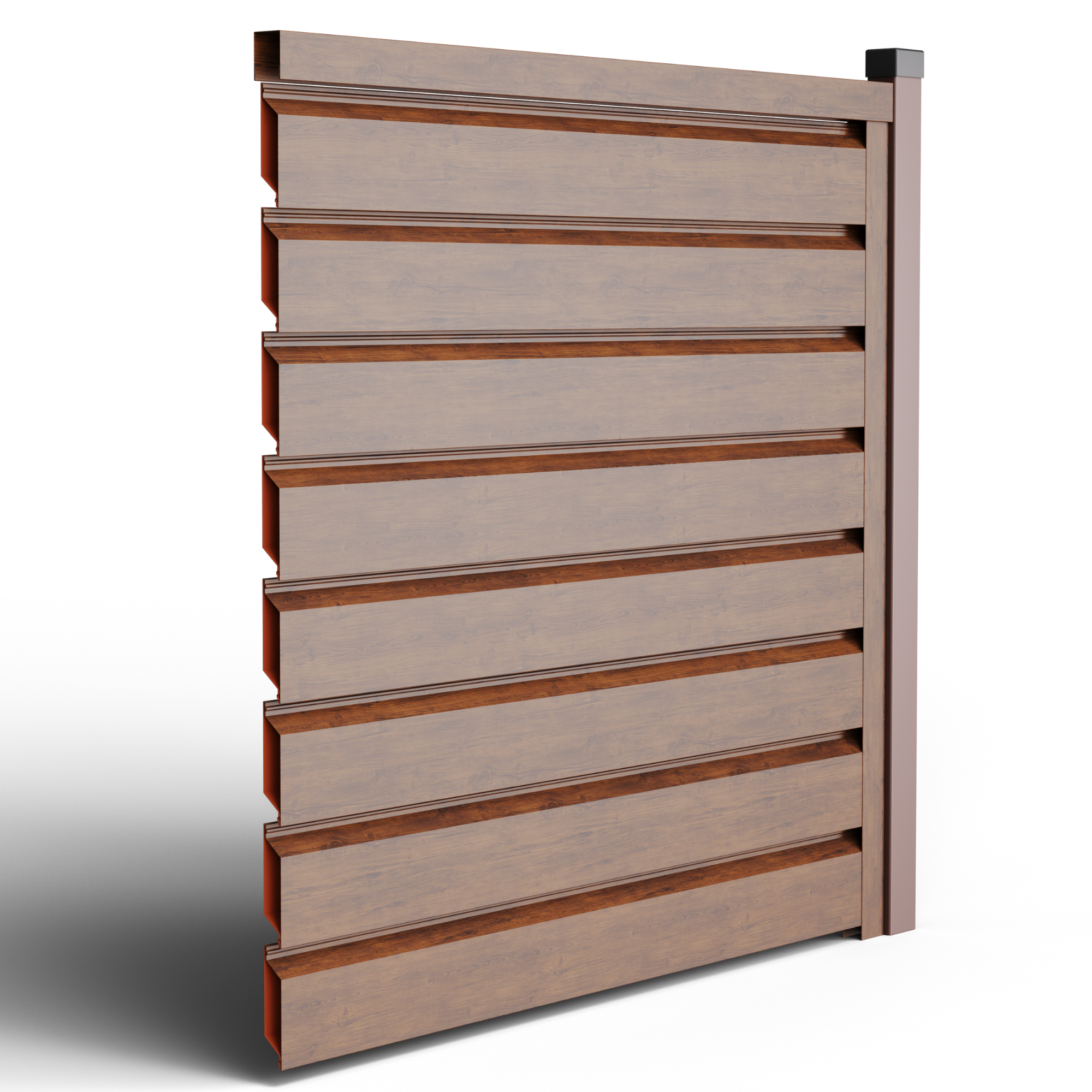 Металните странични U профили, монтирани отстрани на панела (вляво/вдясно).Те са фабрично предварително приготвени, за прецизно насочване и монтаж; стъпката на отворите се калибрира, така че панелът да осигурява правилна вентилация и оптимален визуален вид, поддържайки нивото на поверителност и позволявайки бърз монтаж.