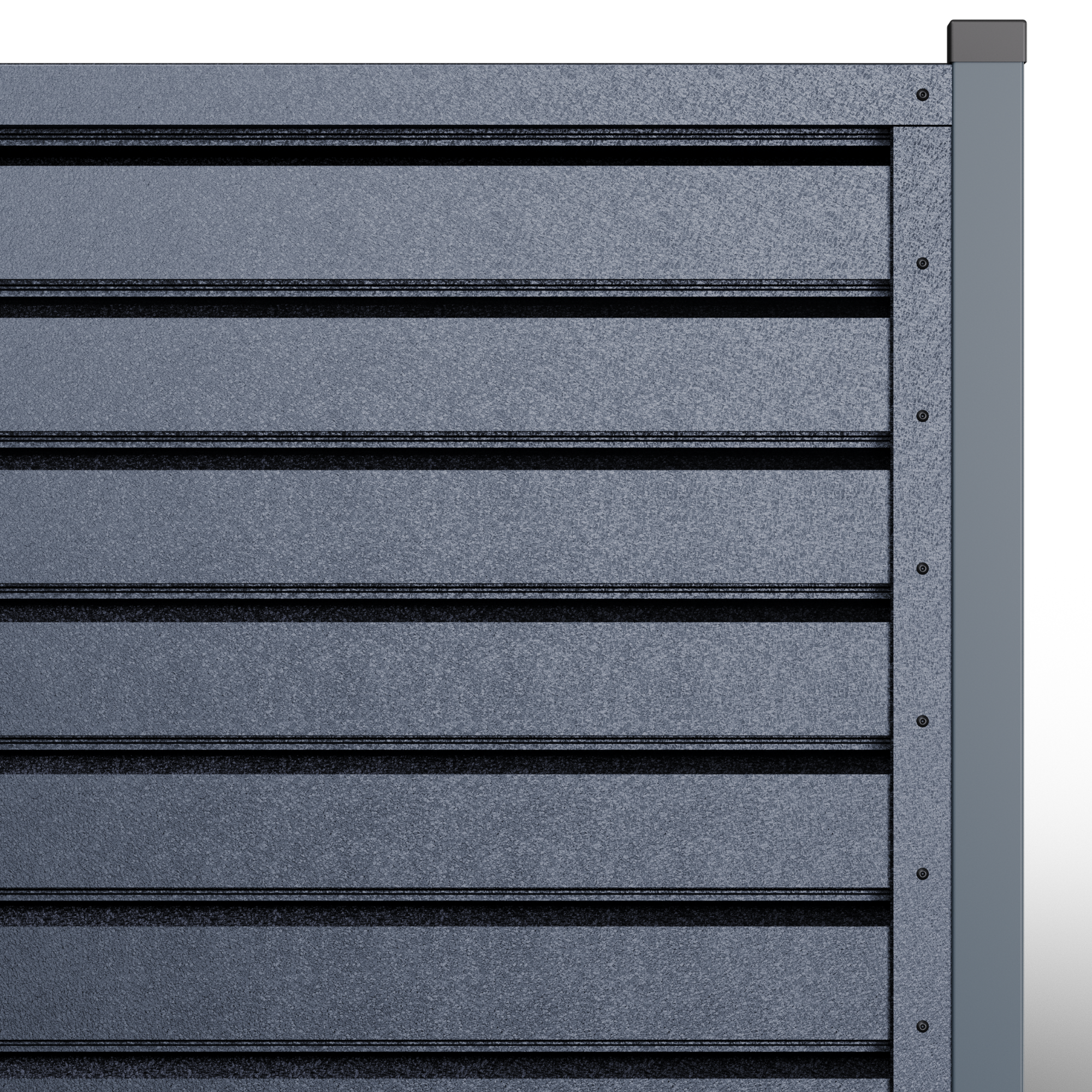 Металните странични U профили, монтирани отстрани на панела (вляво/вдясно).Те са фабрично предварително приготвени, за прецизно насочване и монтаж; стъпката на отворите се калибрира, така че панелът да осигурява правилна вентилация и оптимален визуален вид, поддържайки нивото на поверителност и позволявайки бърз монтаж.