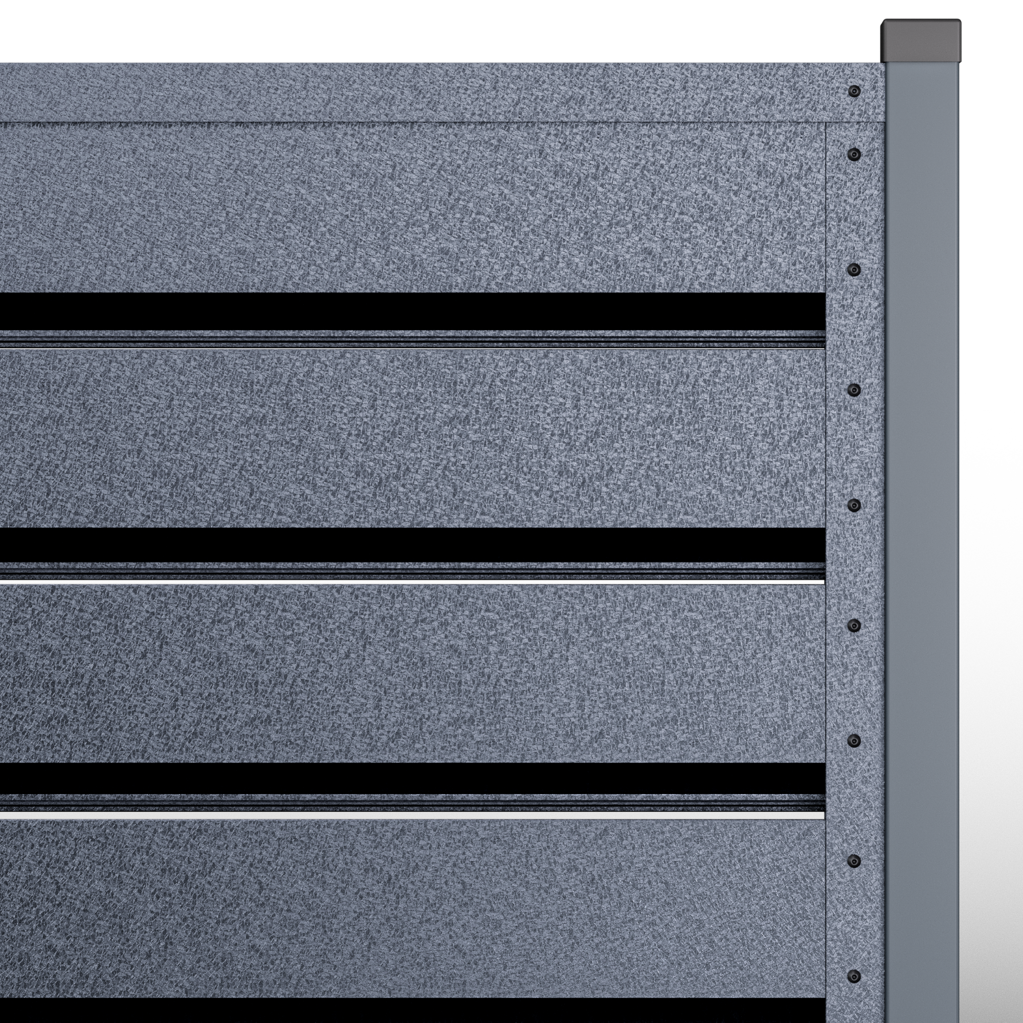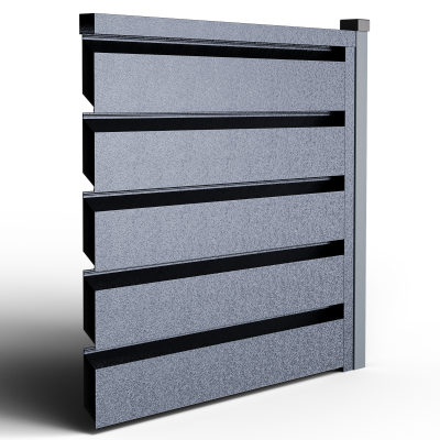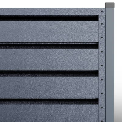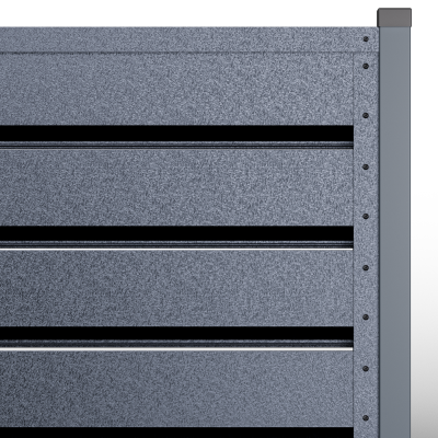 Металните странични U профили, монтирани отстрани на панела (вляво/вдясно).Те са фабрично предварително приготвени, за прецизно насочване и монтаж; стъпката на отворите се калибрира, така че панелът да осигурява правилна вентилация и оптимален визуален вид, поддържайки нивото на поверителност и позволявайки бърз монтаж.