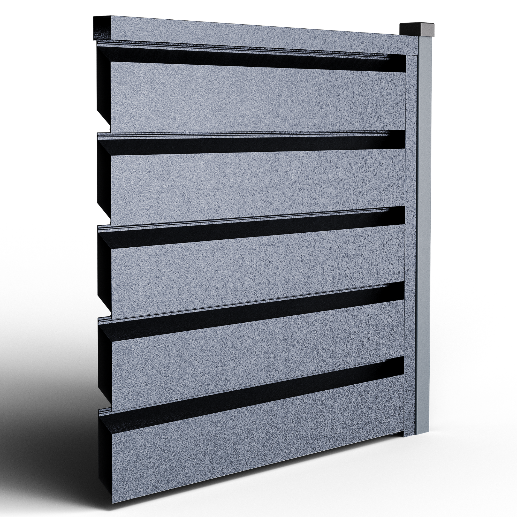 • Ефективна циркулация на въздуха и поверителност – геометрията на кутиите позволява постоянен обмен на въздух, намалявайки натрупването на топлина (без парников ефект) и поддържайки стабилен микроклимат, благоприятен за растителността; същевременно директният поглед от улицата е блокиран, запазвайки поверителността.