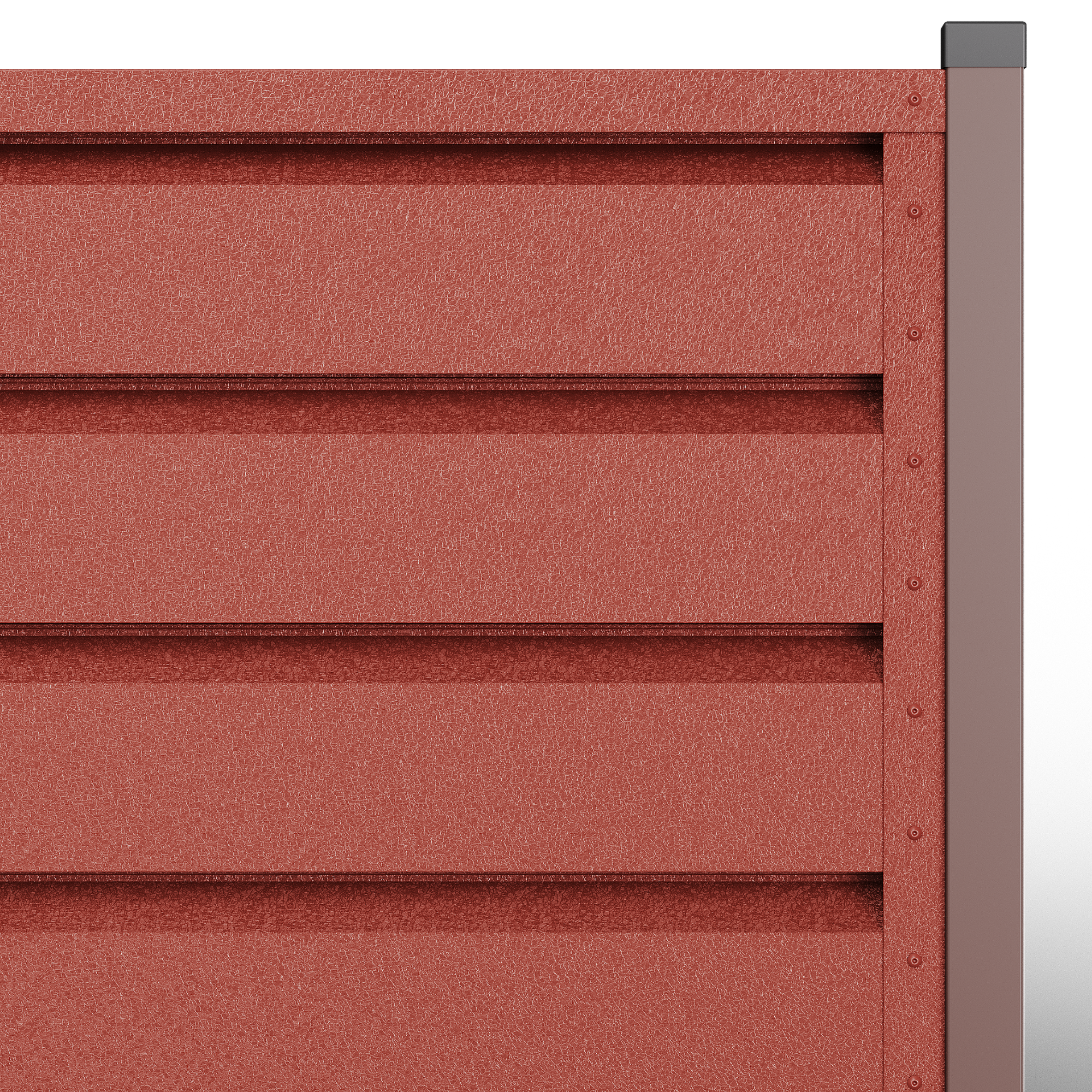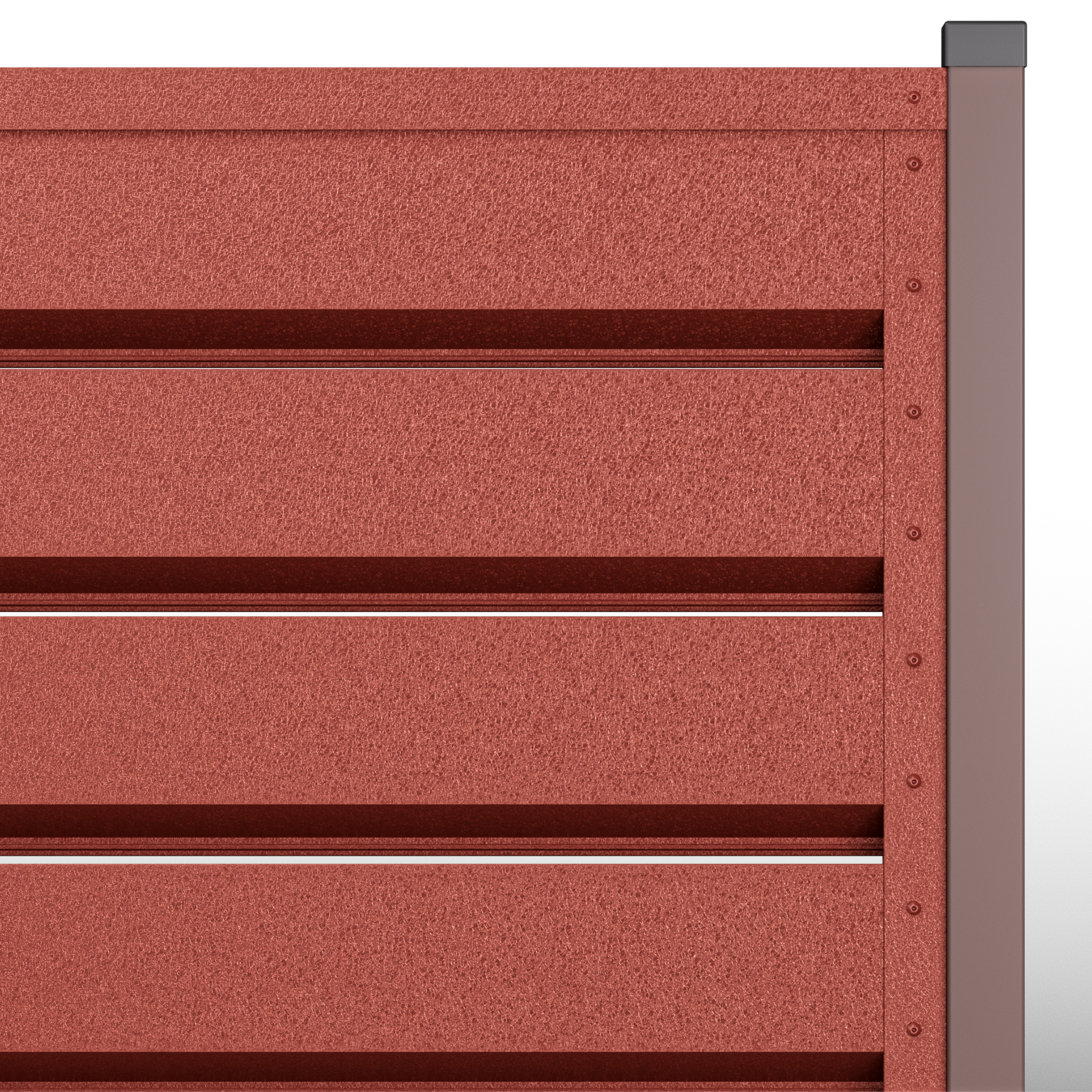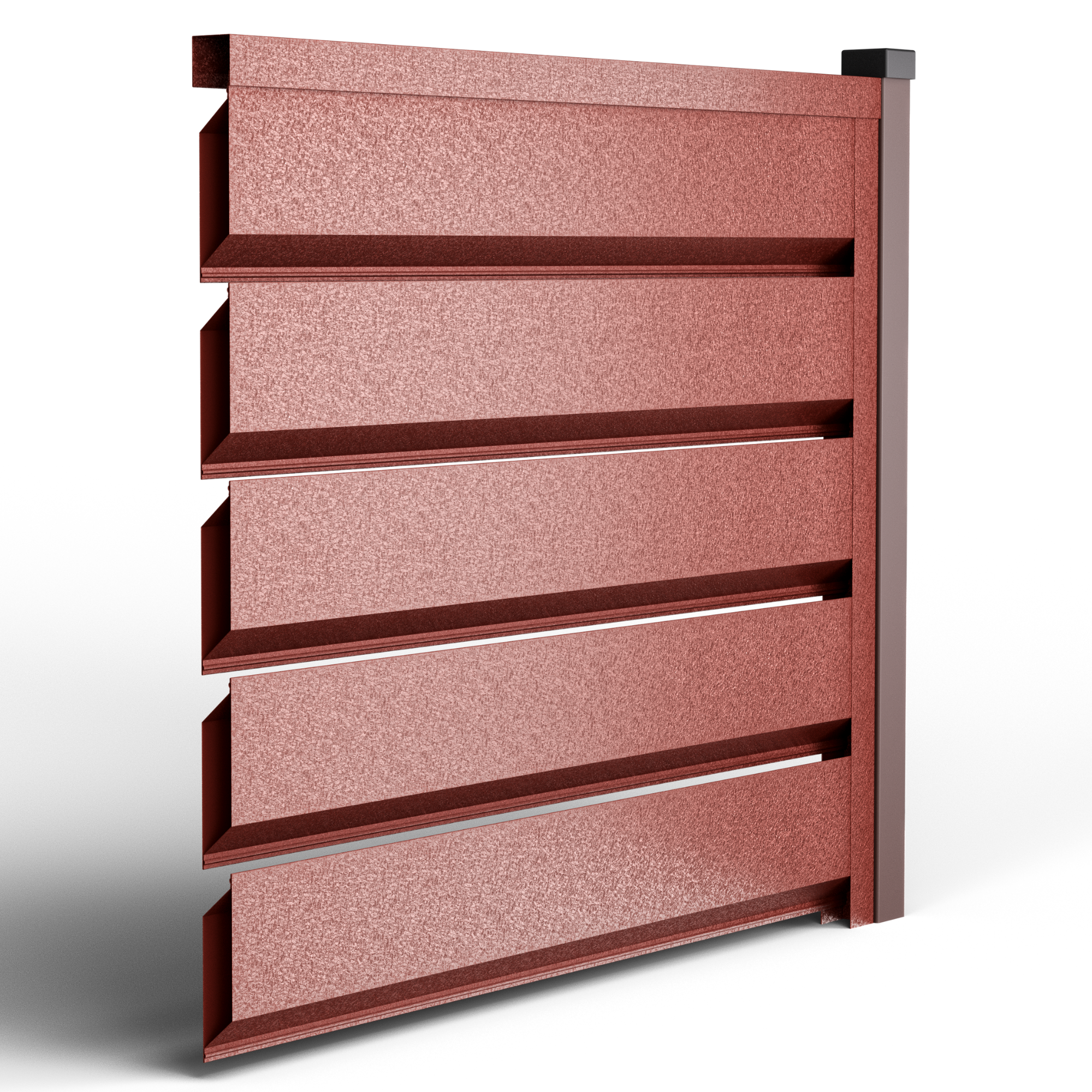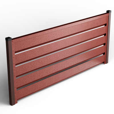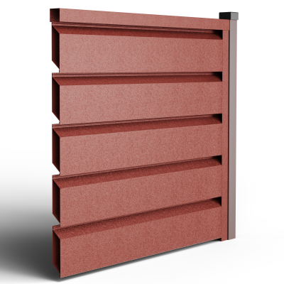 Металните странични U профили, монтирани отстрани на панела (вляво/вдясно).Те са фабрично предварително приготвени, за прецизно насочване и монтаж; стъпката на отворите се калибрира, така че панелът да осигурява правилна вентилация и оптимален визуален вид, поддържайки нивото на поверителност и позволявайки бърз монтаж.