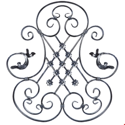 Декоративно, ковано пано от гладко желязо. Симетричен дизайн с нежни извивки, които ще предадат допълнителна красота към всички врати, огради, маси, столове, цветарници, люлки, беседки, решетки и други изделия от ковано желязо.