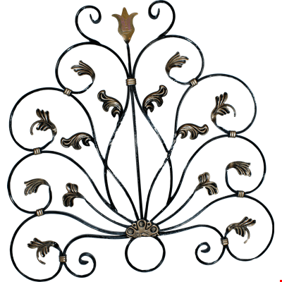 Декоративно пано от ковано желязо, богато украсено с цветя и листа от щампована ламарина. Използва се при вграждане в парапети, огради, маси, столове, цветарници, люлки, беседки, решетки и други изделия от ковано желязо. Удължените извивки ще подчертаят стилната визия на вашия дом.