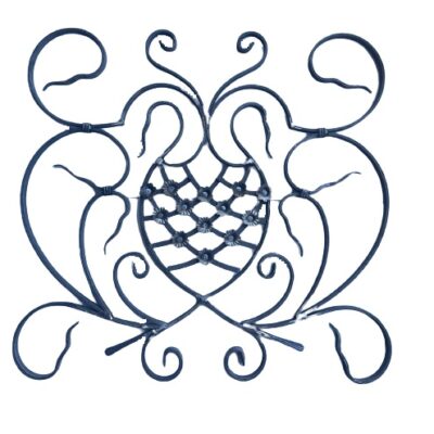 Декоративно, ковано пано от гладко желязо. Симетричен дизайн с нежни извивки, които ще предадат допълнителна красота към всички врати, огради, маси, столове, цветарници, люлки, беседки, решетки и други изделия от ковано желязо.