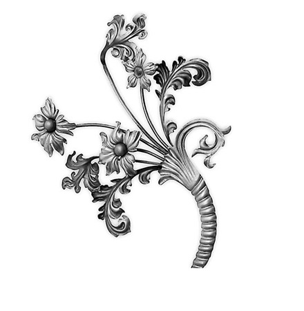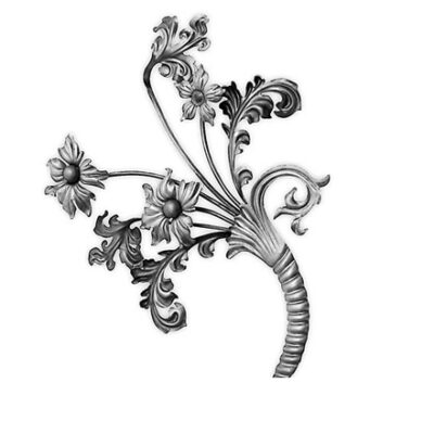 Богато украсено пано от ковано желязо с листа, цветя и рози за допълнителна романтика за вграждане в огради, маси, столове, цветарници, люлки, беседки, решетки и други изделия от ковано желязо.