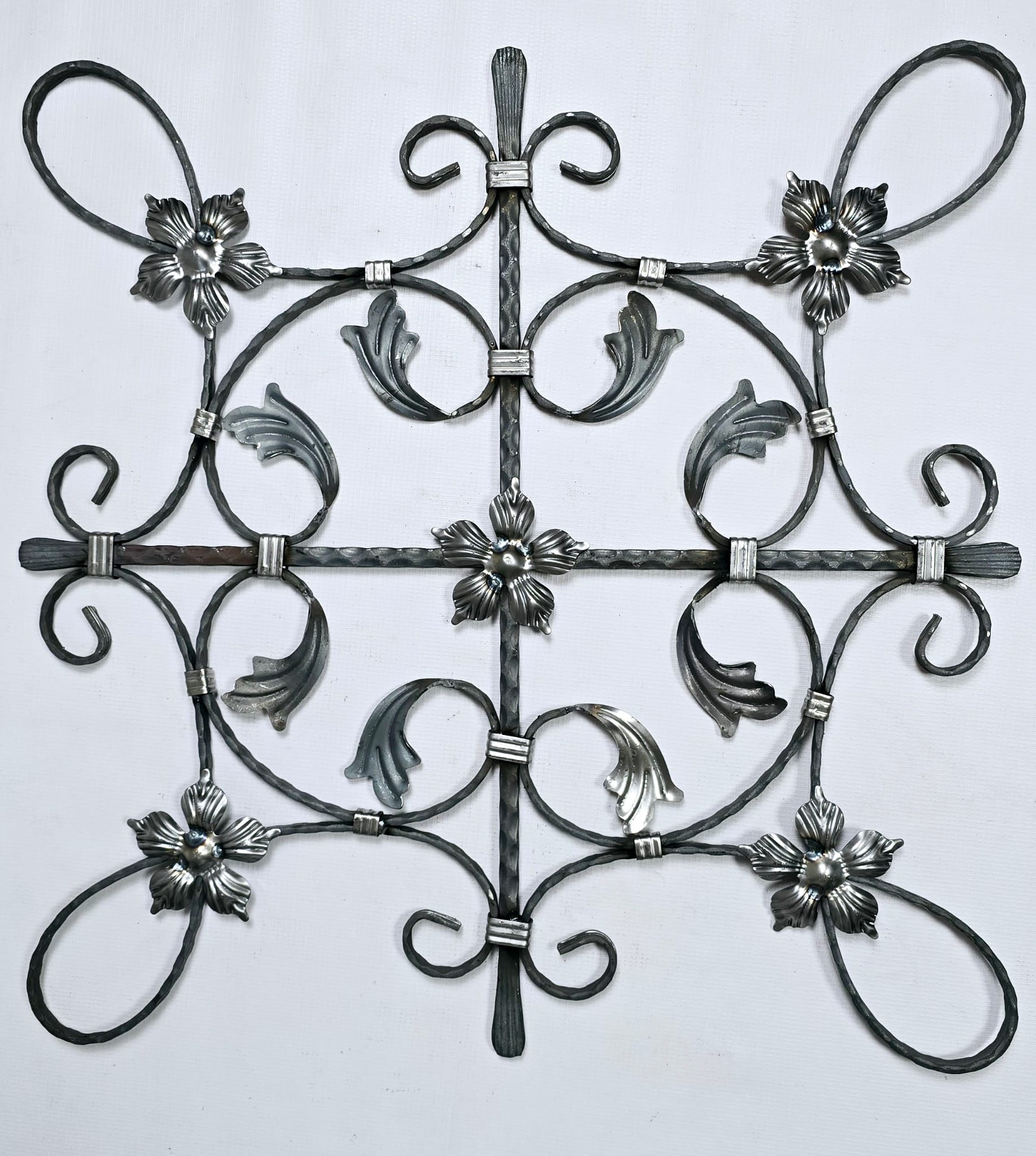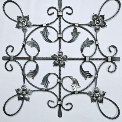 Голямо декоративно пано от ковано желязо с цветя, листа и С-образни елементи за вграждане в парапети, огради, маси, столове, цветарници, люлки, беседки, решетки и други изделия от ковано желязо. Огъването, коването и заваряването на продукта се извършва както от специализирани машини, така и от майстори ковачи.