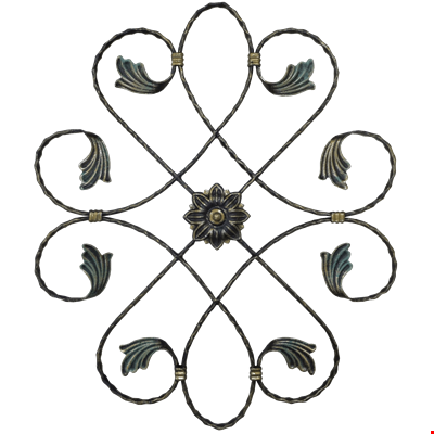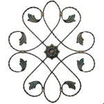 Стилно пано от ковано желязо с листа от щампована ламарина за вграждане в парапети, огради, маси, столове, цветарници, люлки, беседки, решетки и други изделия от ковано желязо.