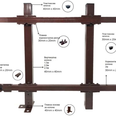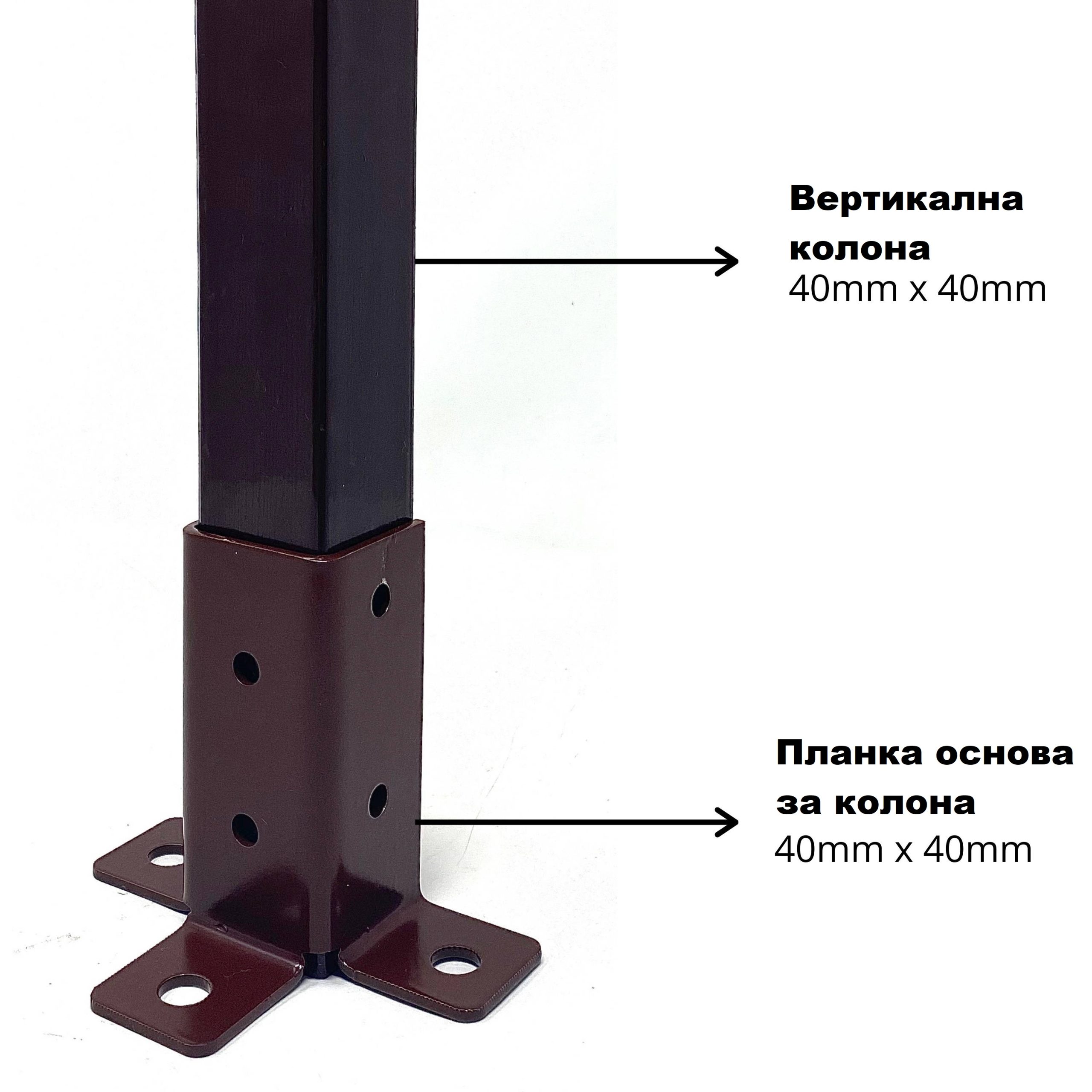Планка основа за колона се фиксирана към съществуващата бетонна основа с анкери или разширителни фуги от най-малко 12 см. Планка основа за колона се прикрепена към стълба 40 mm x 40 mm със същия тип самопробивни винтове (4,8 x 19 mm), използвани за закрепване на металната летва към правоъгълната тръба.