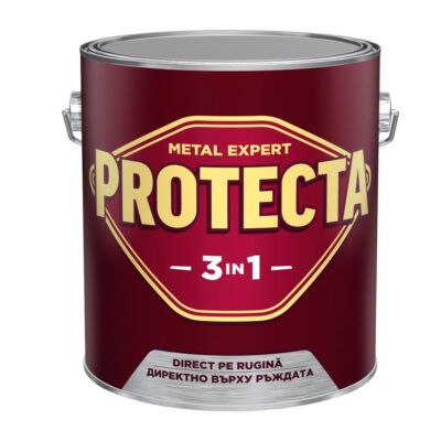 PROTECTA 3in1 е продукт за защита на черни метали от атмосферни влияния, произведен с висококачествени алкидни смоли, преобразувател на ръжда и органични разтворители. Употребява се за декорация и защита на нови и ръждясали повърхности от черни метали – врати, парапети, огради и др.