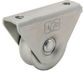Външно V+ U-образно колело за врата, изработено от стомана с кутия. Предлага се в различни размери. V-U образното колело с канали е с кутия за завинтване или заваряване на долния профил на вратата, за да стои по-високо над релсите. Може да издържи до 150 кг.