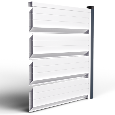 Металните странични U профили, монтирани отстрани на панела (вляво/вдясно).Те са фабрично предварително приготвени, за прецизно насочване и монтаж; стъпката на отворите се калибрира, така че панелът да осигурява правилна вентилация и оптимален визуален вид, поддържайки нивото на поверителност и позволявайки бърз монтаж.