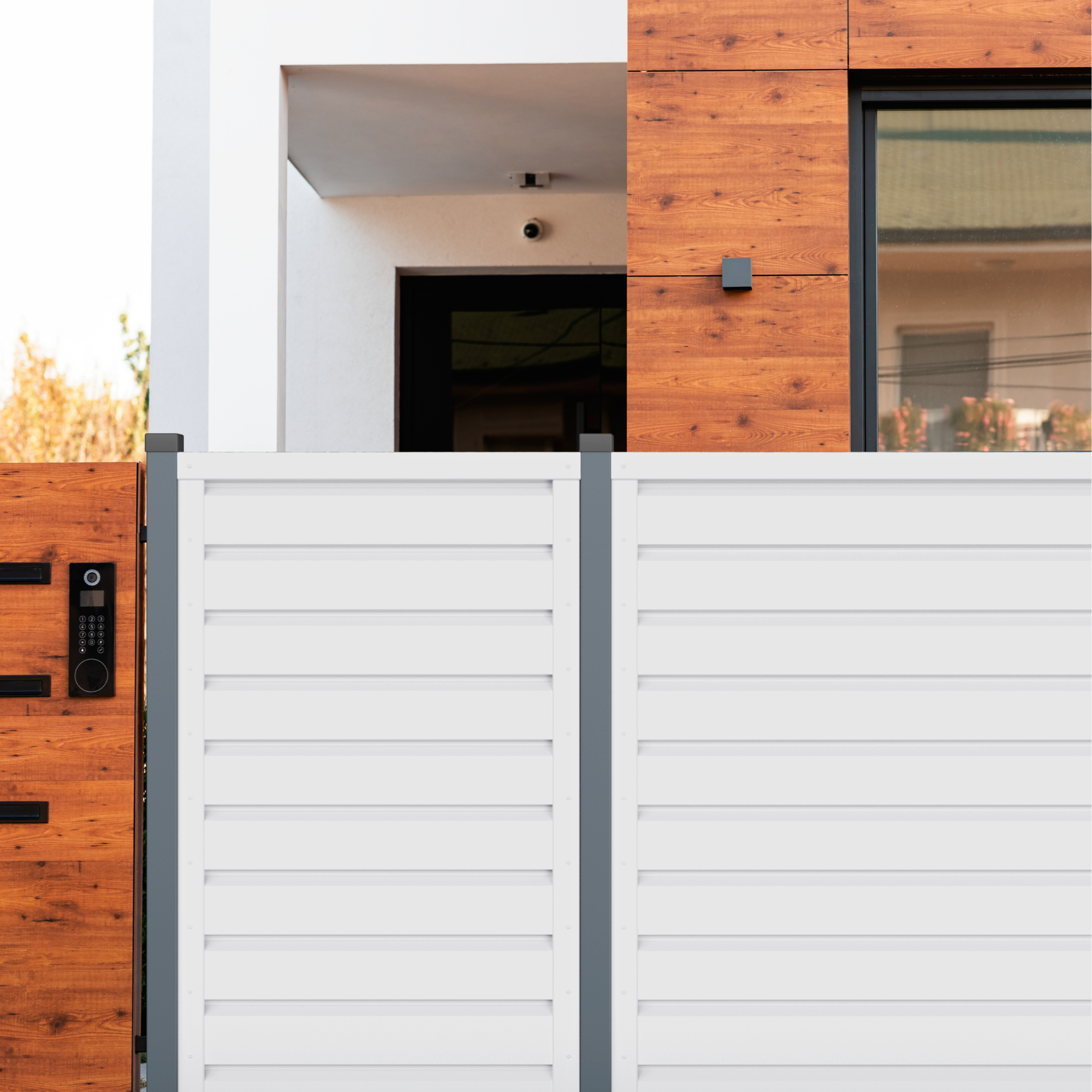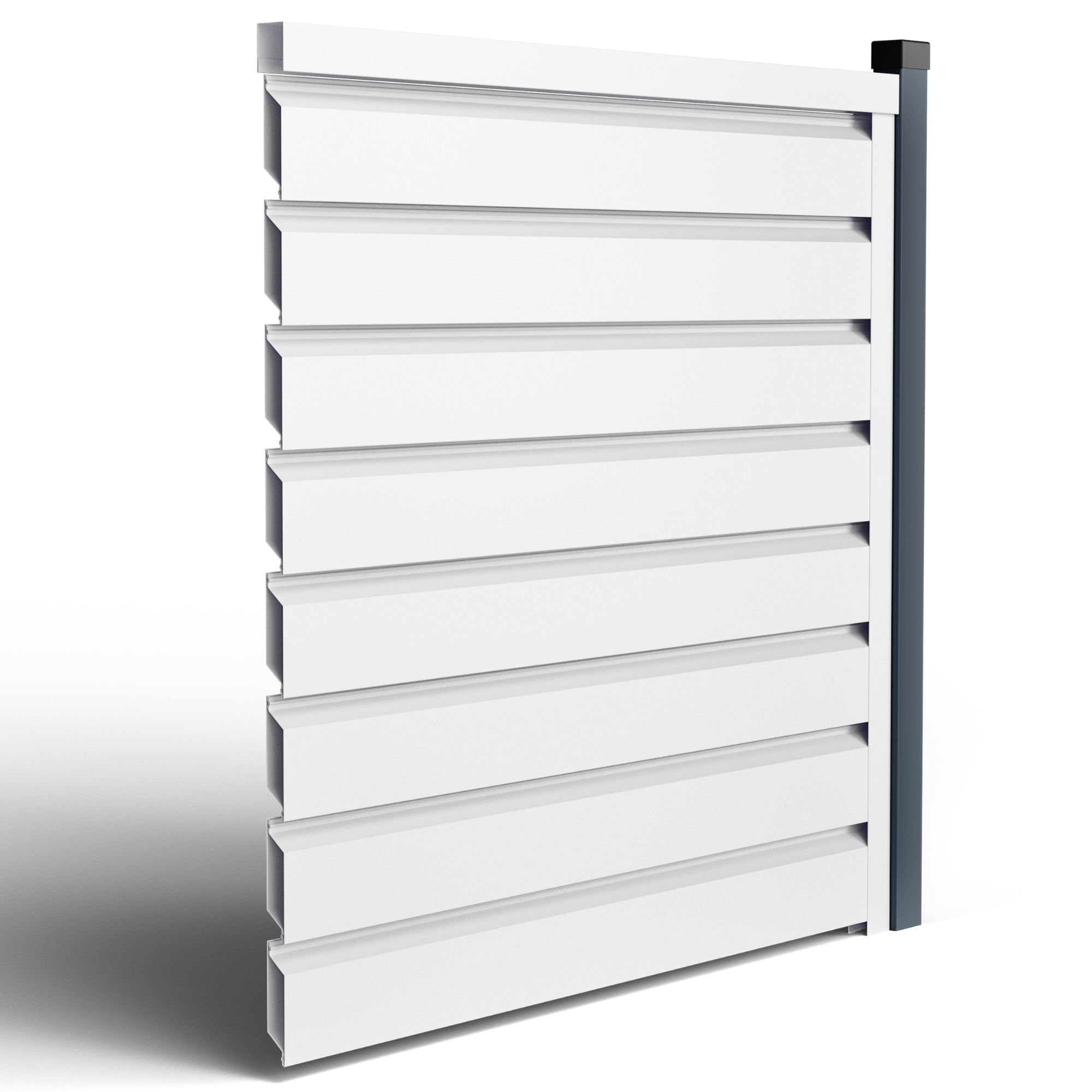 Металните странични U профили, монтирани отстрани на панела (вляво/вдясно).Те са фабрично предварително приготвени, за прецизно насочване и монтаж; стъпката на отворите се калибрира, така че панелът да осигурява правилна вентилация и оптимален визуален вид, поддържайки нивото на поверителност и позволявайки бърз монтаж.