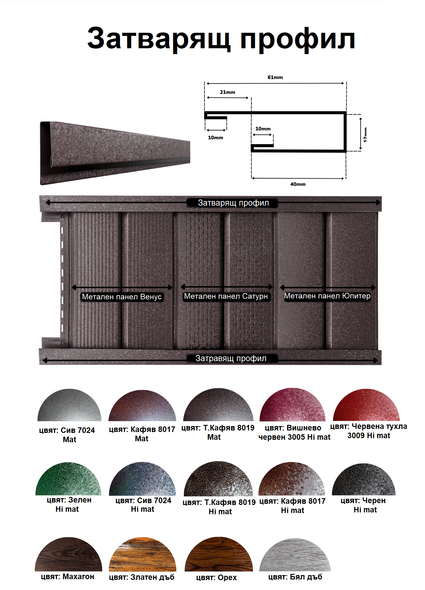 Начало » Магазин » Оградни щори и ламарини » Метален сайдинг » Затварящ профил за сайдинг